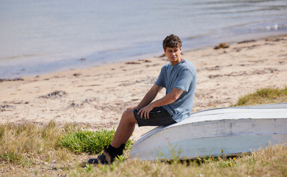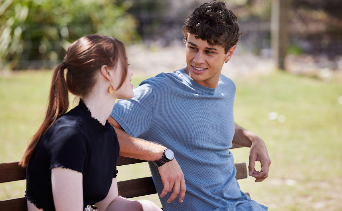 After the shock of his abusive father Dimitri (Salvatore Coco) turning up in Summer Bay unexpectedly last week, Theo found a kindred spirit in Chloe (Sam Barrett), who was feeling sorry for herself after being kicked out of the farmhouse by Bella (Courtney Miller).