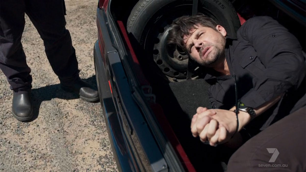 The next shot shows the recent scenes in which Dean called on the River Boys to help deal with PK. We last saw him in the boot of one of the boys’ cars, with his hands bound and a rag stuffed in his mouth.