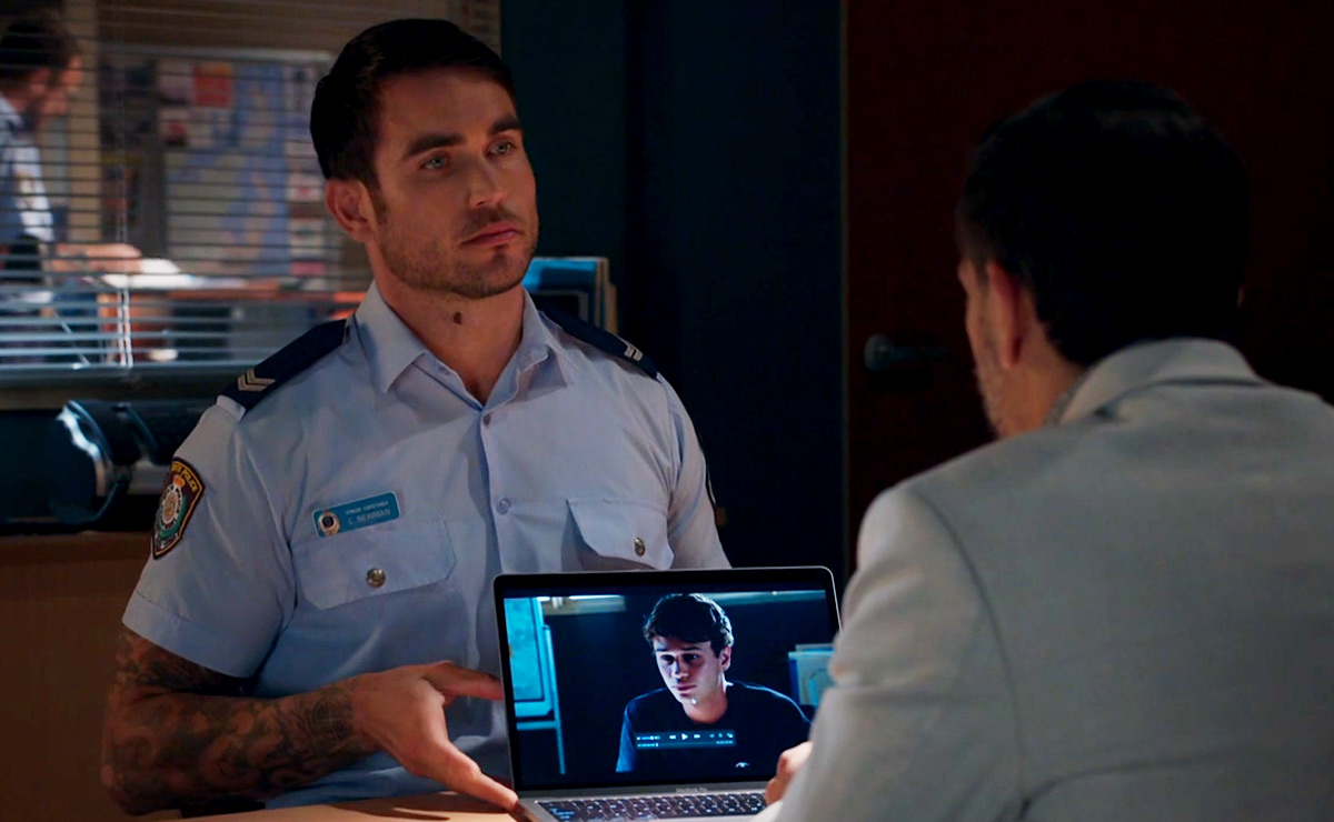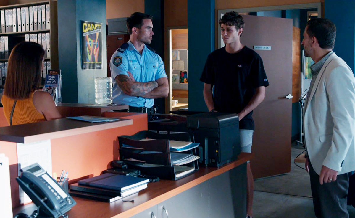 In the end it’s Dimitri himself that attracts the attention of the police. When Theo goes to confront his father about putting Justin in hospital, Dimitri refuses to take responsibility, claiming that he barely touched him. As Dimitri then tries to violently force Theo into his car, local cop Cash (Nicholas Cartwright) intervenes, and takes them both down to the station.