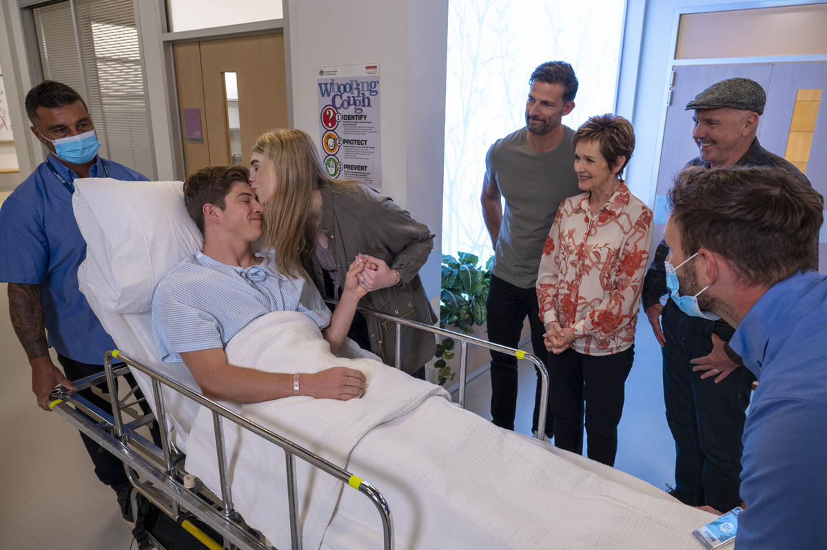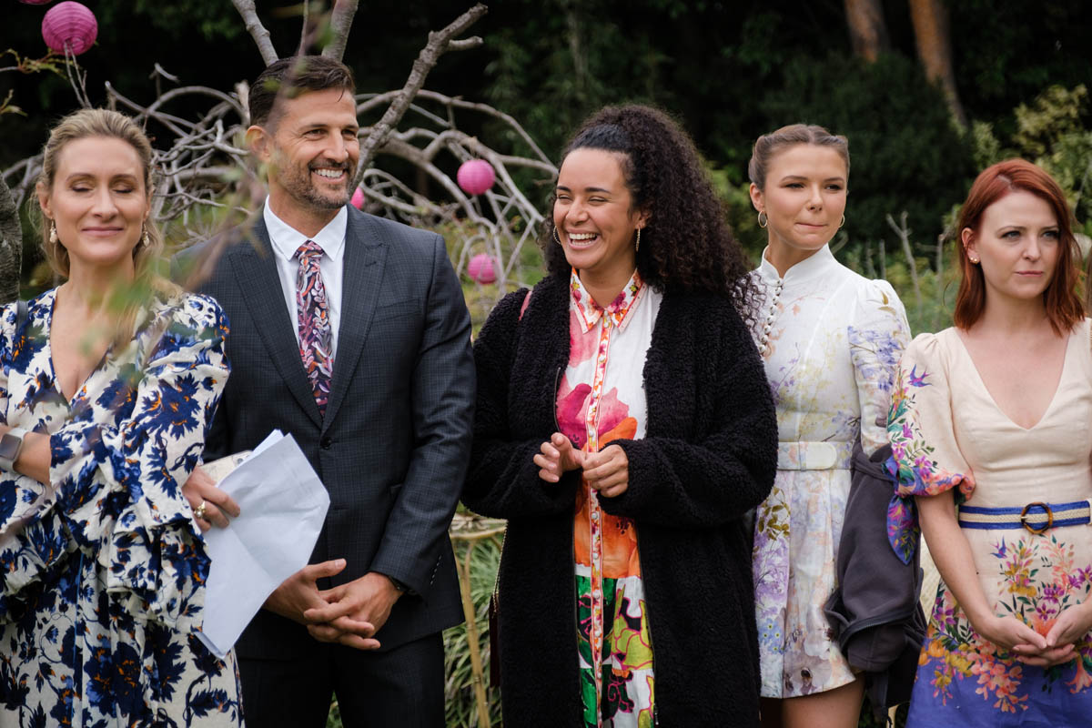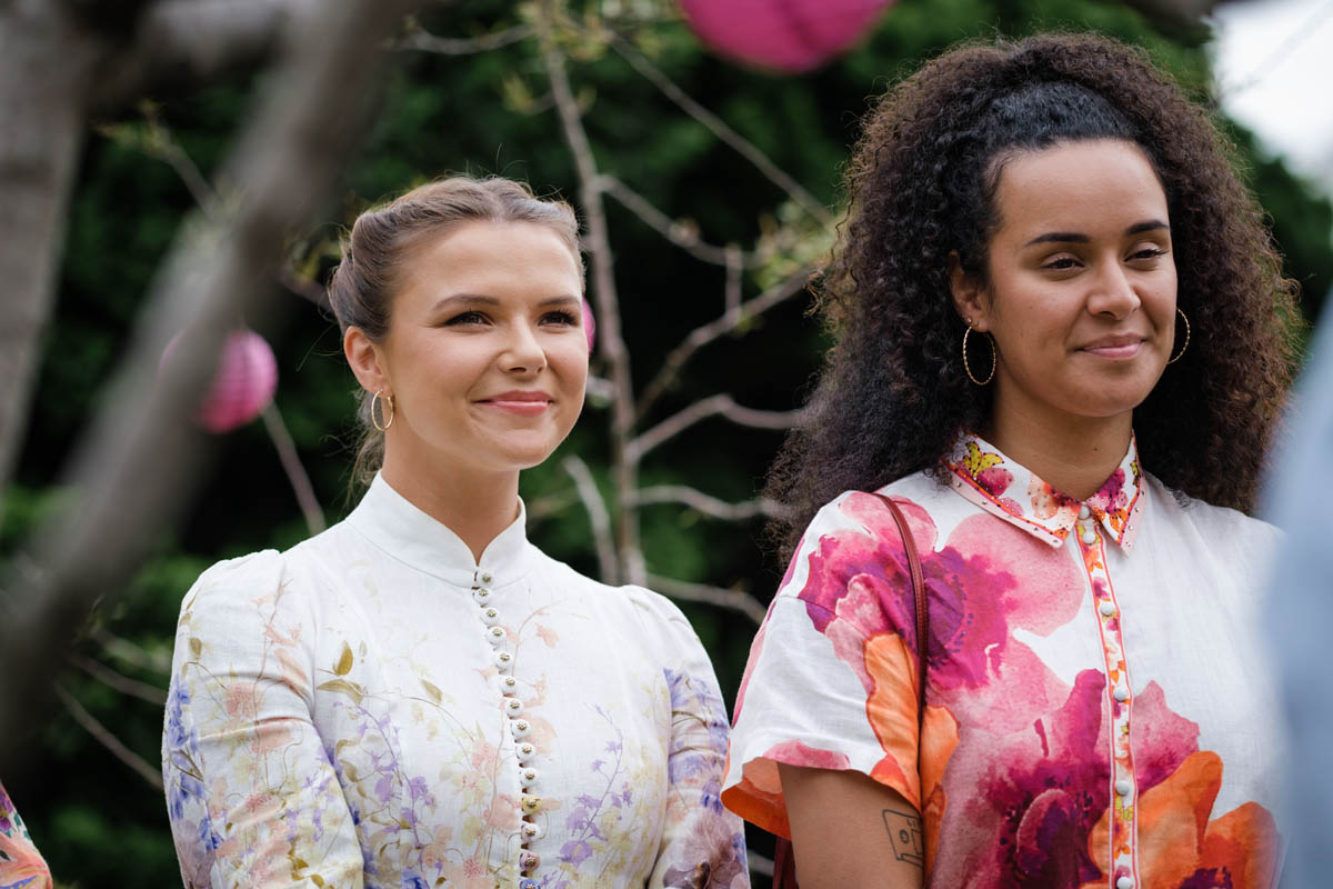Mackenzie’s new flatmates and Ramsay Street newbies Kiri (Gemma Bird Matheson) and Freya (Phoebe Roberts) are there, while Harlow (Gemma Donovan) has put any past issues firmly behind her as she watches her ex-boyfriend and best friend tie the knot.