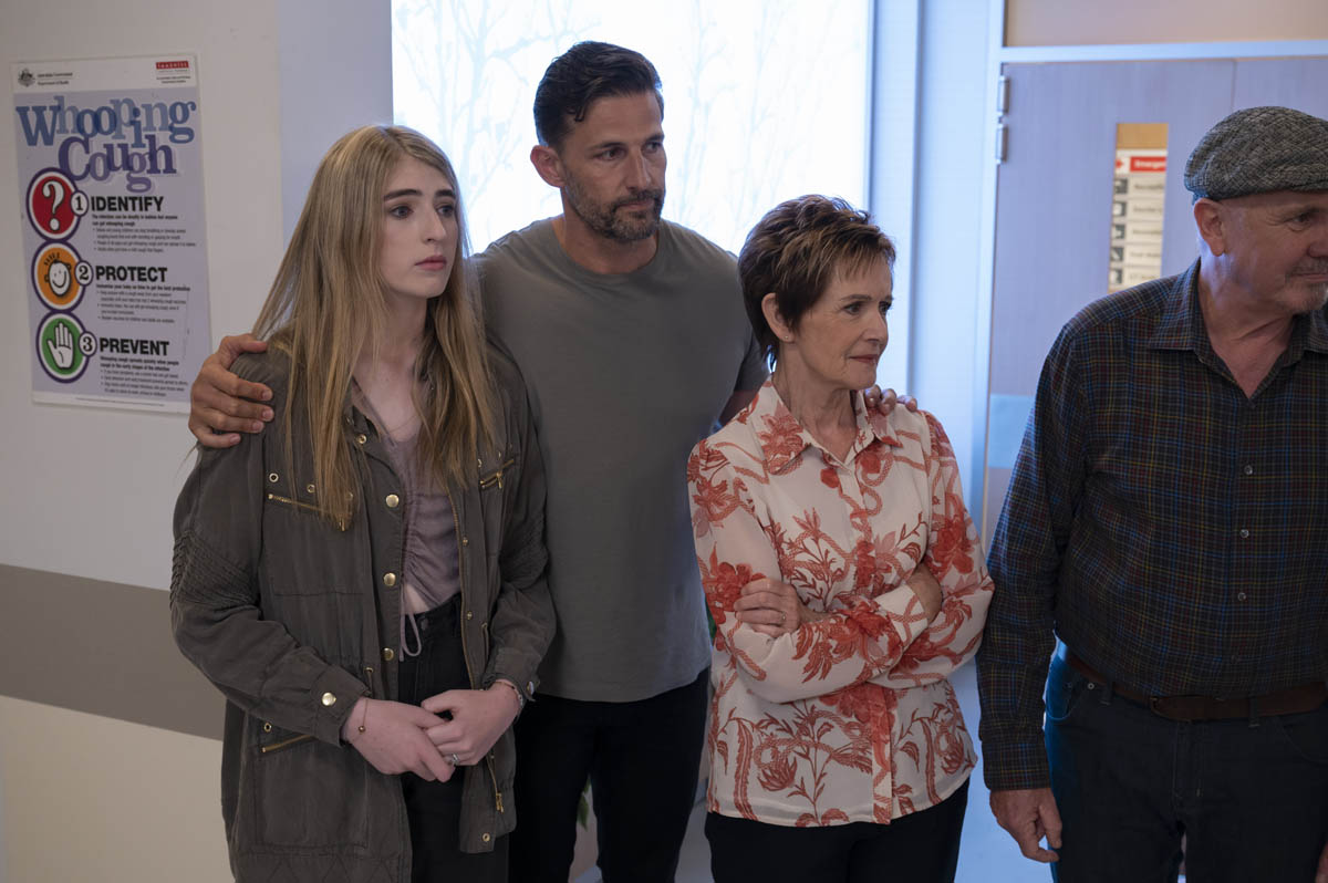 Hendrix’s family have made the journey from Sydney – dad Pierce (Tim Robards), mum Lisa (Jane Allsop) and sister Alana (Molly Broadstock).