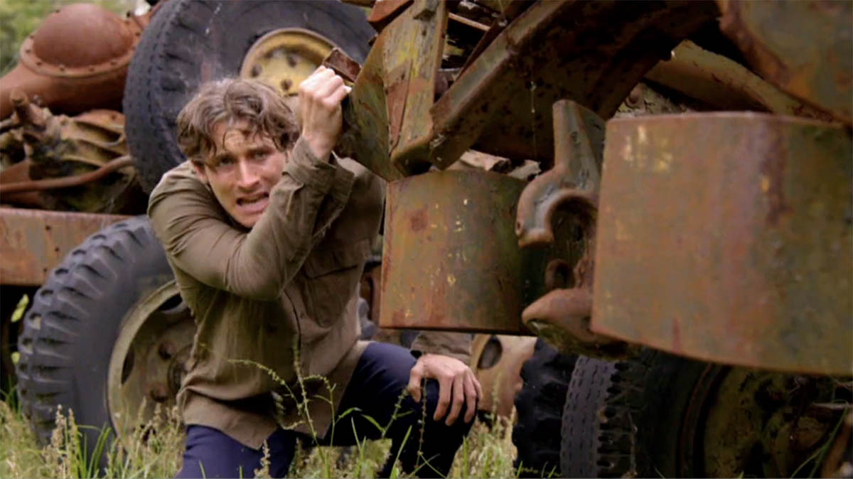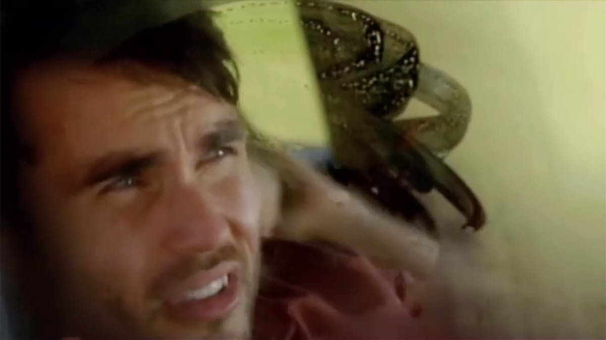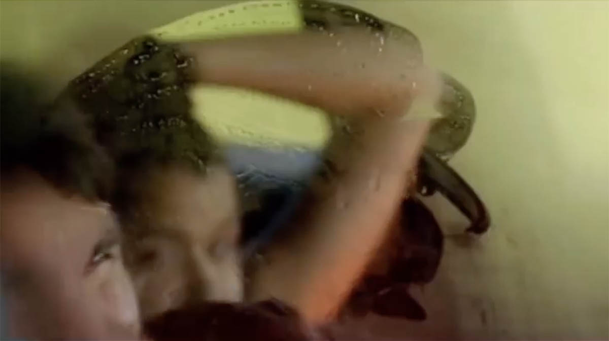 From within, we see a hand wipe off the condensation and stare through the glass – Cash, still wearing the same orange shirt from the night before; he’s clearly spent the night on the back seat of the car!