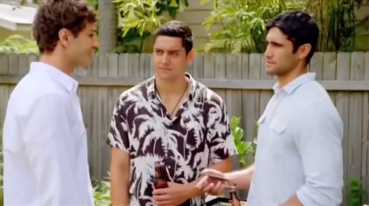 The promo shows a brief clip of Rose and Cash laughing together, before drunkenly stumbling through the downstairs of the surf club arm in arm.