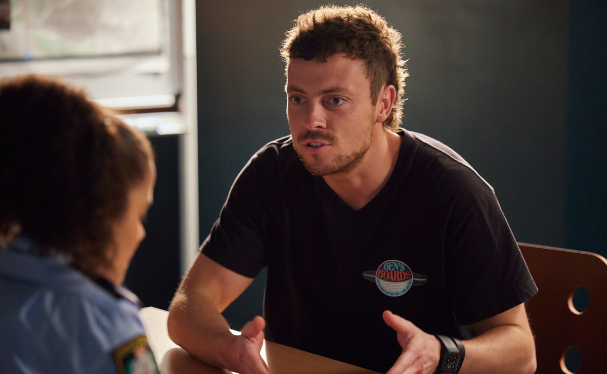 Hauling him in for questioning, Rose and Cash notice the marks on Dean’s knuckles, who claims they were from surfing. Ziggy is able to provide Dean with an alibi, stating they were both at home, but both Rose and Cash agree that she seemed twitchy and have their doubts.