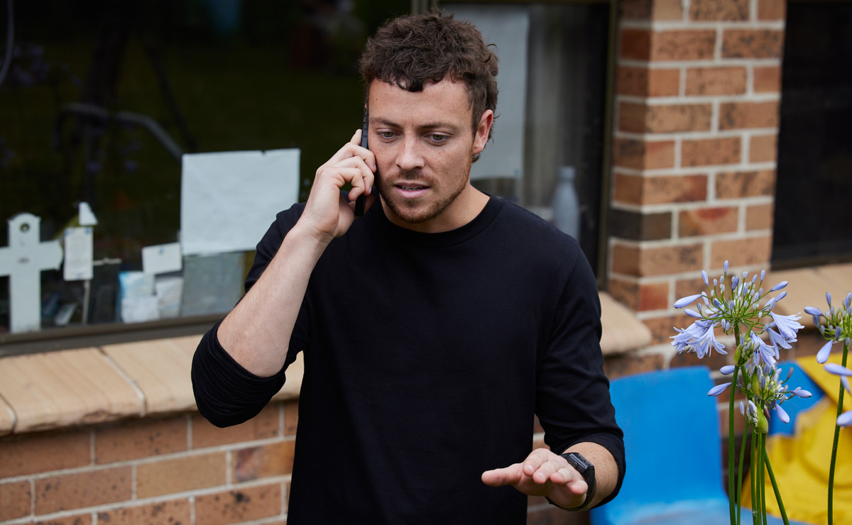 As Dean heads outside to try to calm a panicked Ziggy on the phone, there’s an almighty commotion before Nathan comes tearing out of the house… having smashed a bottle over Nugget’s noggin.