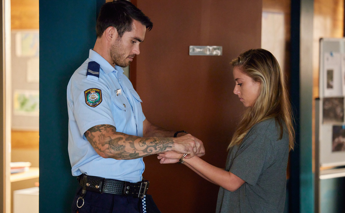 All Flick can do is protest as Cash is forced to handcuff his sister and drag her down to the police station, with Tane in quick pursuit.