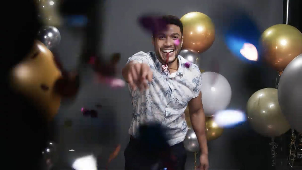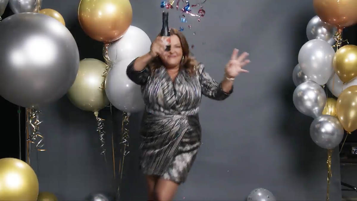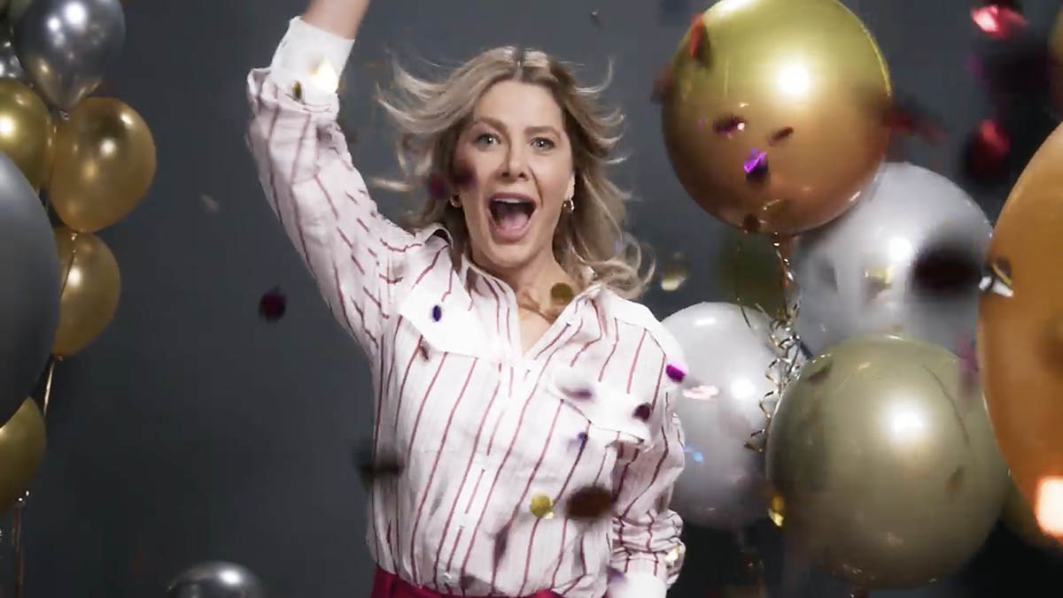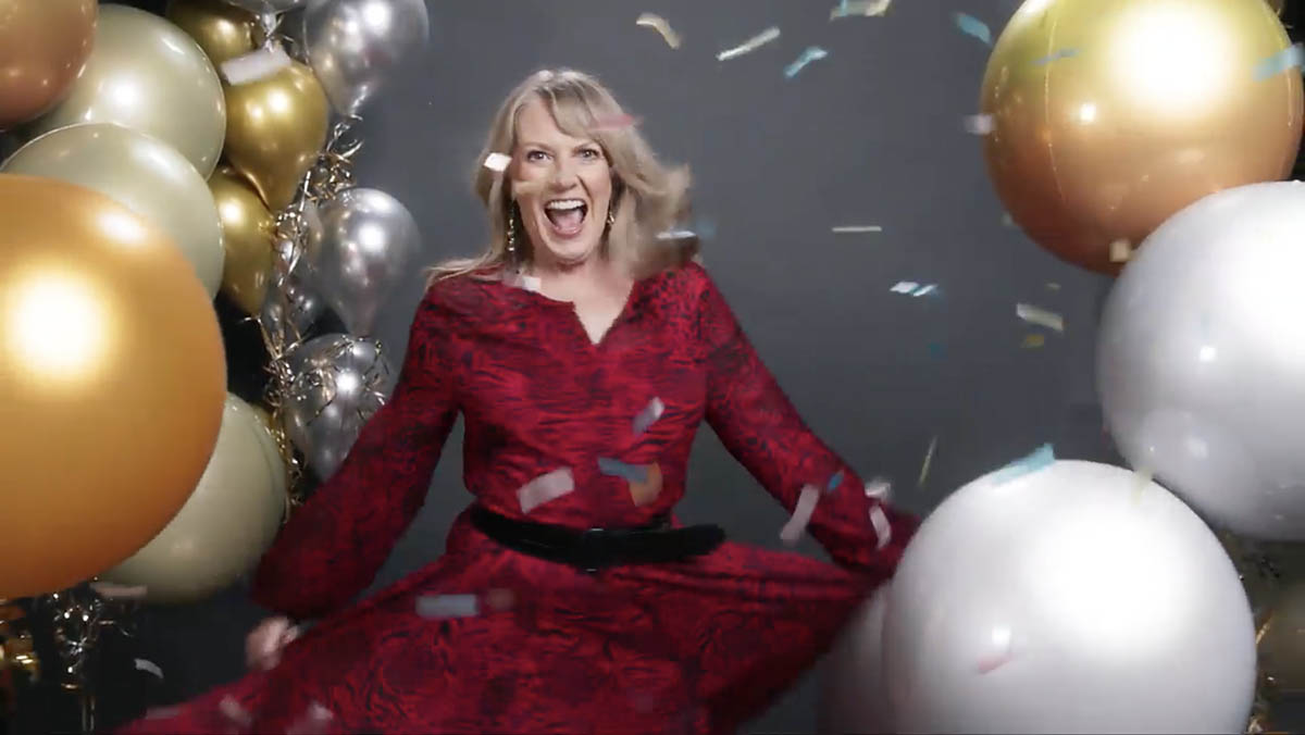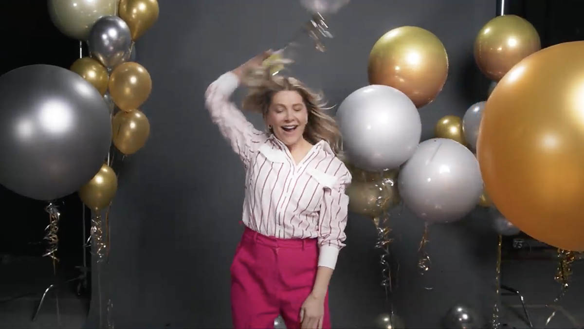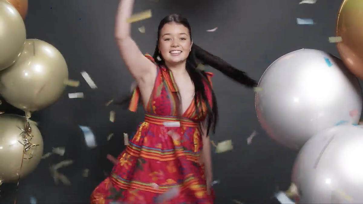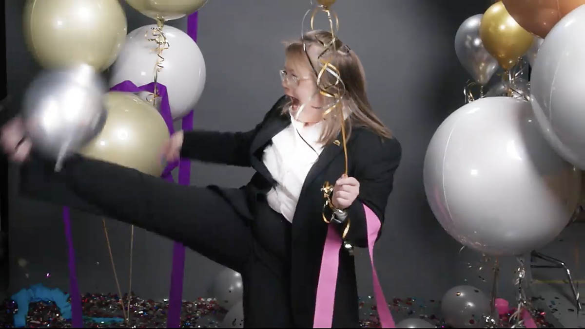 Terese Willis (Rebekah Elamloglou) can’t hide her excitement as she spins around, holding a bunch of balloons.