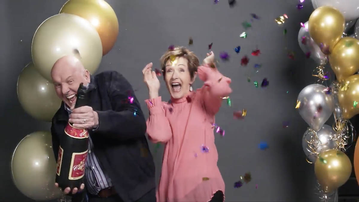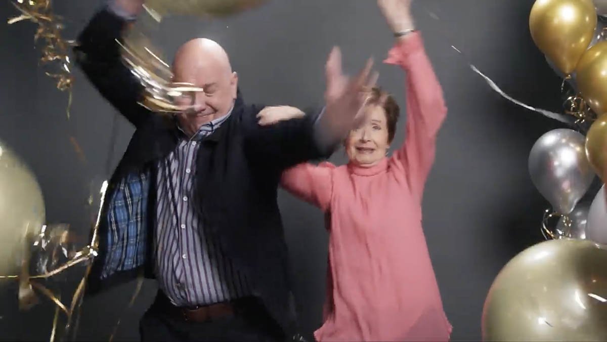 Karl (Alan Fletcher) and Susan (Jackie Woodburne) play with sparkers in the glitzy video.
