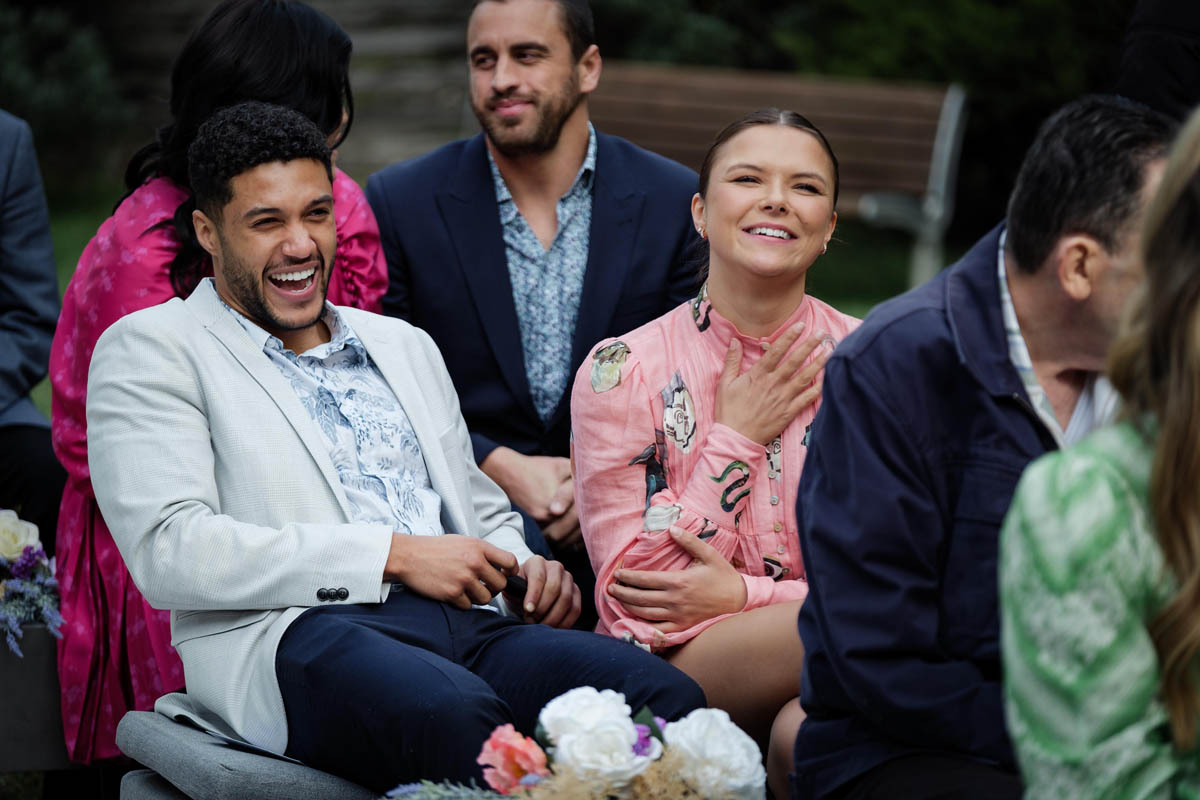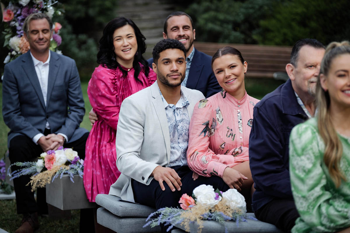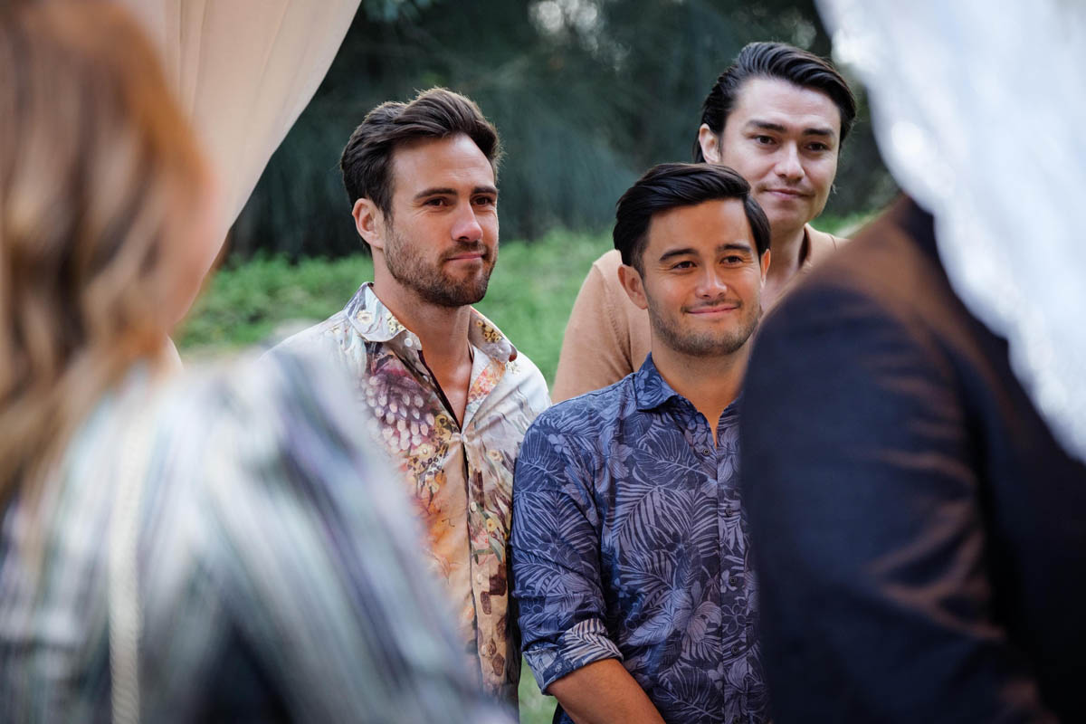 David (Takaya Honda) is free to relax, his ordeal now over, and he and husband Aaron (Matt Wilson) can sit back and enjoy the nuptials.