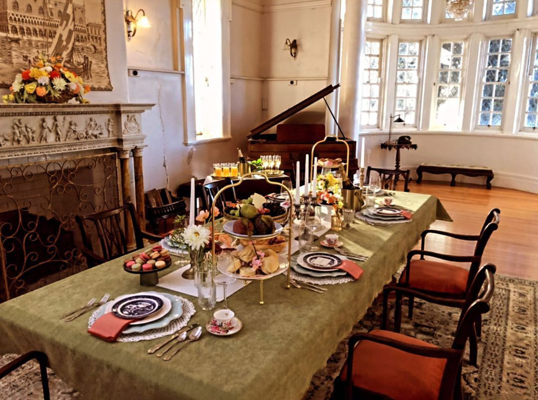 Lynne’s photos include her and Ada in front of the ‘Welcome to Young’ sign, and the cast between takes in the dining room, with Heather’s lavish spread in the foreground.