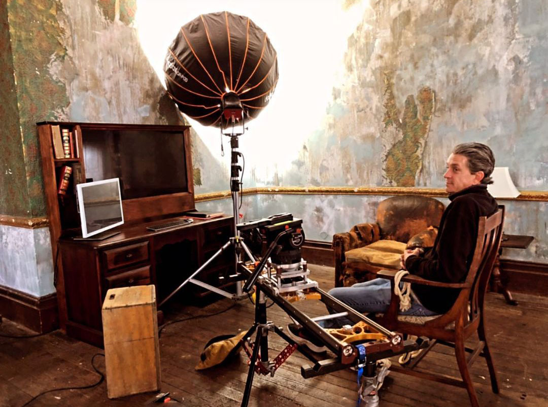 Matthew Grossman stands in for Marilyn as they frame the shots.