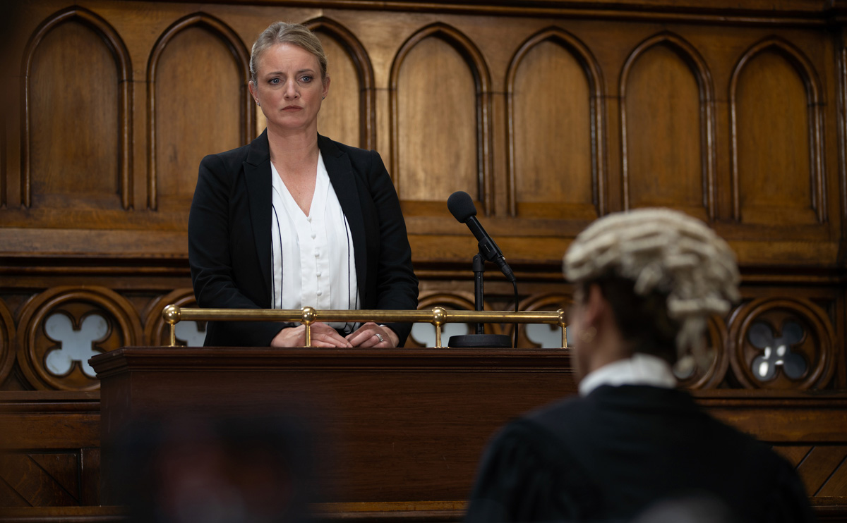 As Naomi takes the stand, she does her best to ignore Saskia’s threats in order to give her version of events. But as the defence barrister tries to grind her down during the cross-examination, with Saskia’s glare tormenting her, Naomi finally snaps.