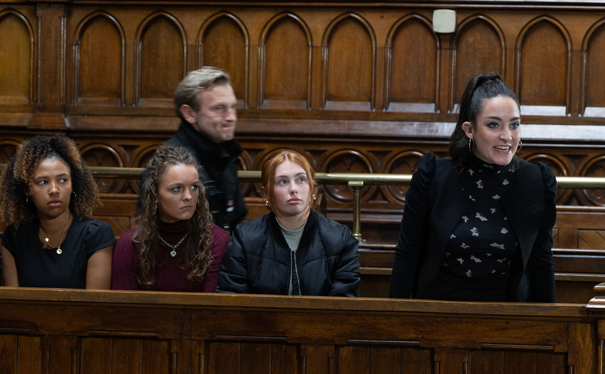 A manipulative Saskia manages to keep her cool as the prosecution cross-examines her, as they point out that Naomi has no reason to lie given that she’s implicated herself in a serious crime.