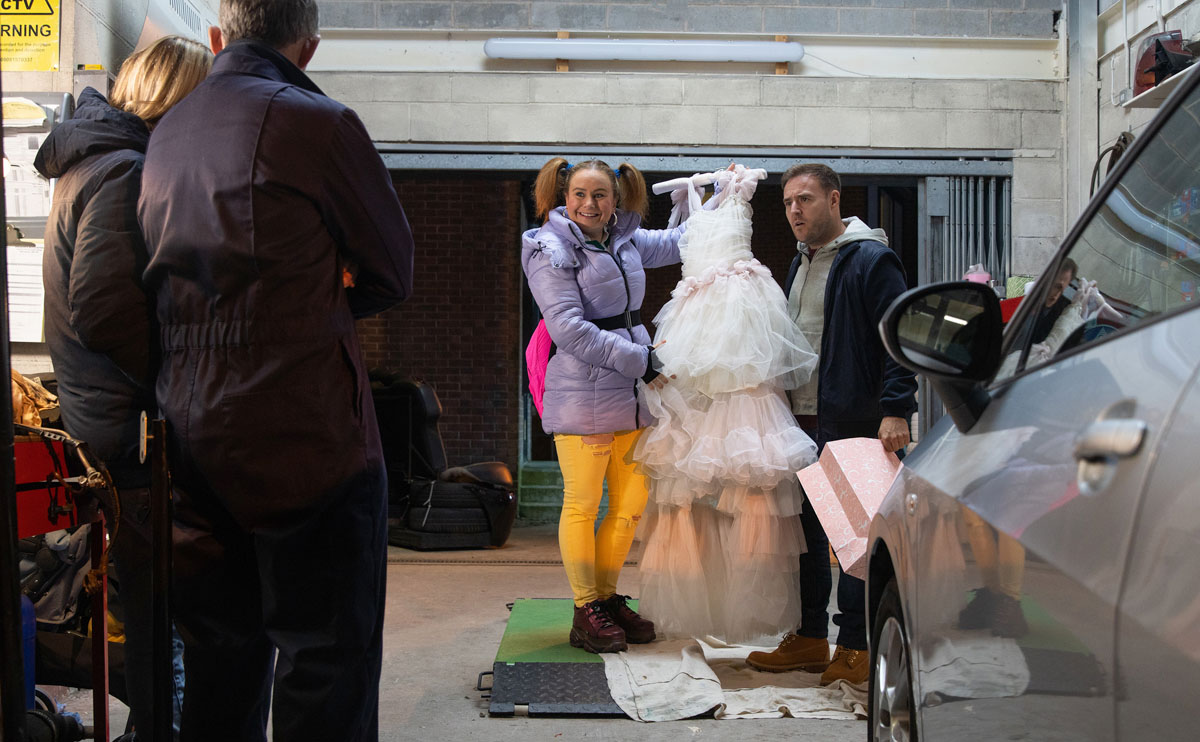Fiz finds Gemma modelling a wedding dress and wants to know what’s going on!
