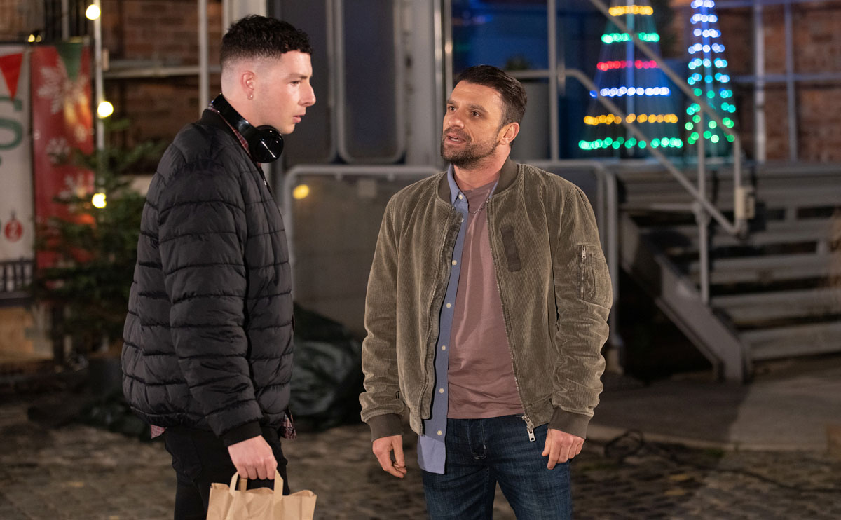 Plus, Jacob is horrified when a familiar face calls out to him as he’s walking down Victoria Street, it’s his dad, Damon (Ciaran Griffiths)!