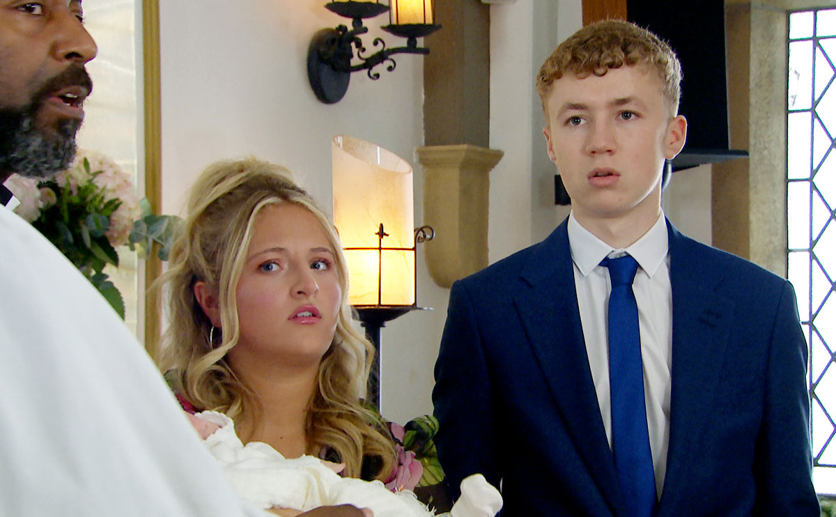 As final preparations are made for the ceremony, Esther’s mum Amelia (Daisy Campbell) is grateful for the support of her boyfriend Noah (Jack Downham), who’s stepped up after teen dad Samson (Sam Hall) refused to have anything to do with his newborn daughter.