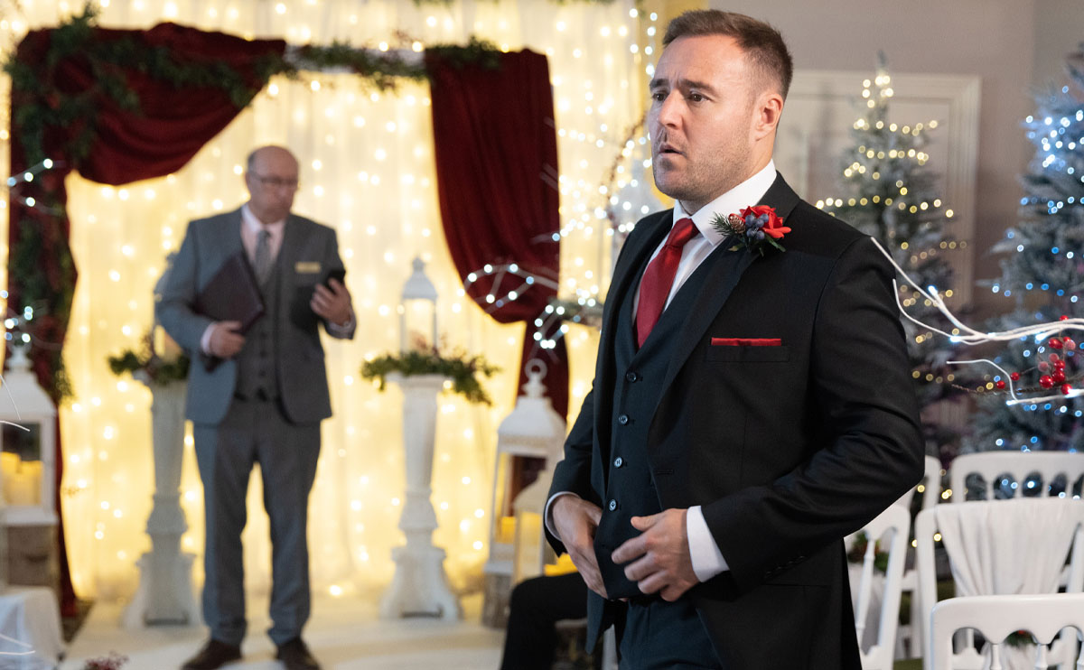 As Christmas Day dawns on Coronation Street, the time has finally arrived for Tyrone (Alan Halsall) and Fiz (Jennie McAlpine) to walk down the aisle… not that Fiz knows it!