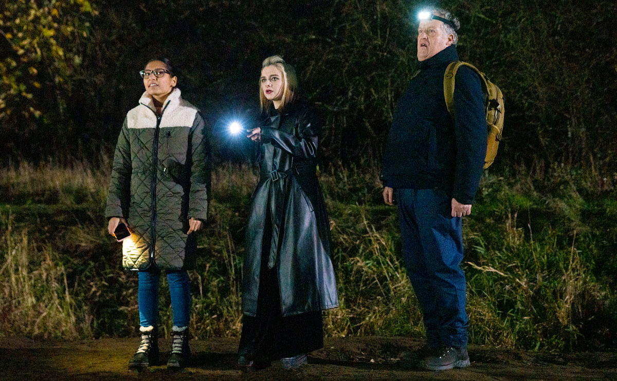 As Brian, Nina and Asha turn up in the hope of saving Roy the trouble of trekking through the woods, they spot his car and realise that he’s already arrived, but is nowhere to be found. It’s then that Nina happened to spot Roy’s thermos in the river and assumes the worse…