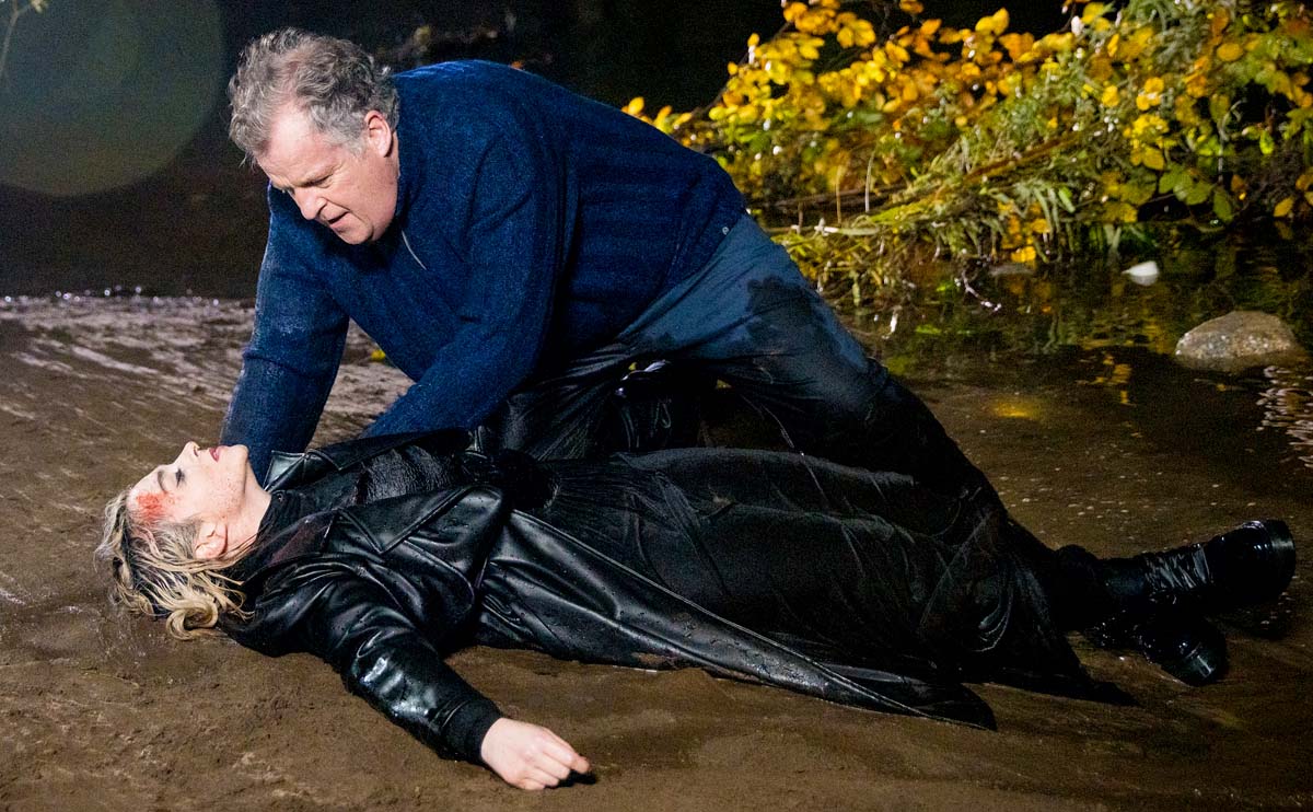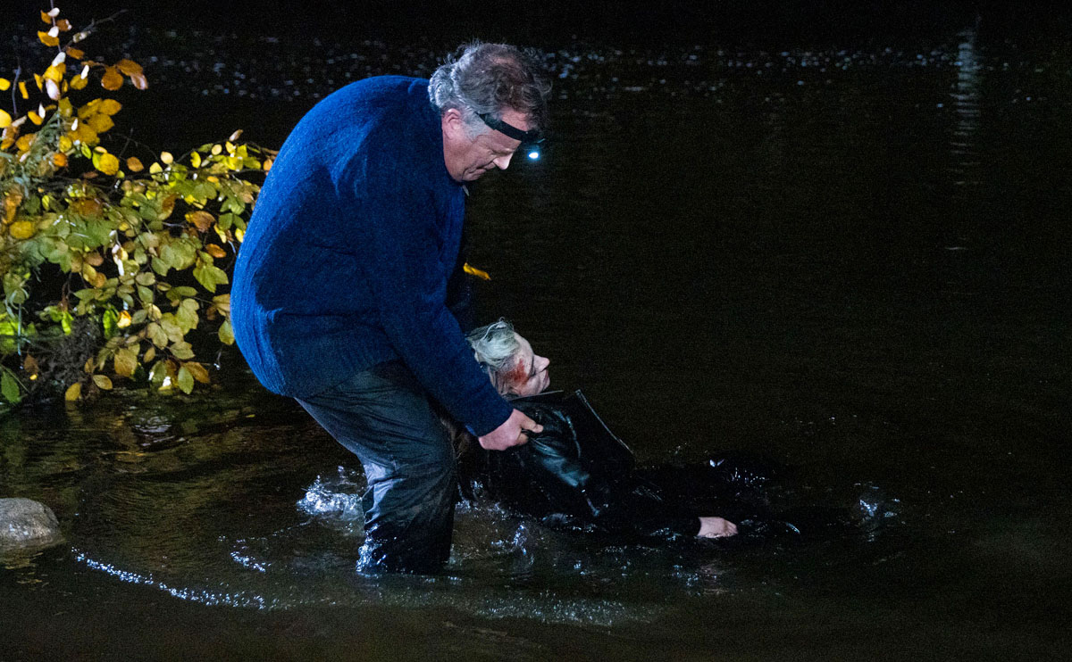 But as Nina makes her way down the bank, she slips on the mud and bangs her head, knocking herself out. Brian and Asha can only watch in horror as Nina’s limp body then tumbles straight into the river!