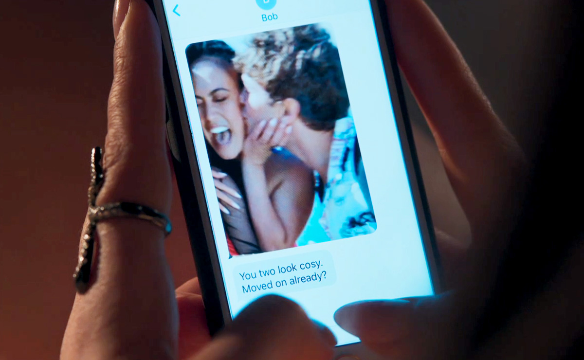 Kirby eventually agrees to meet up with Bob, and it doesn’t take long for Theo to discover the truth, when he sees a text come in whilst Kirby’s phone is sat on the coffee table in front of him.