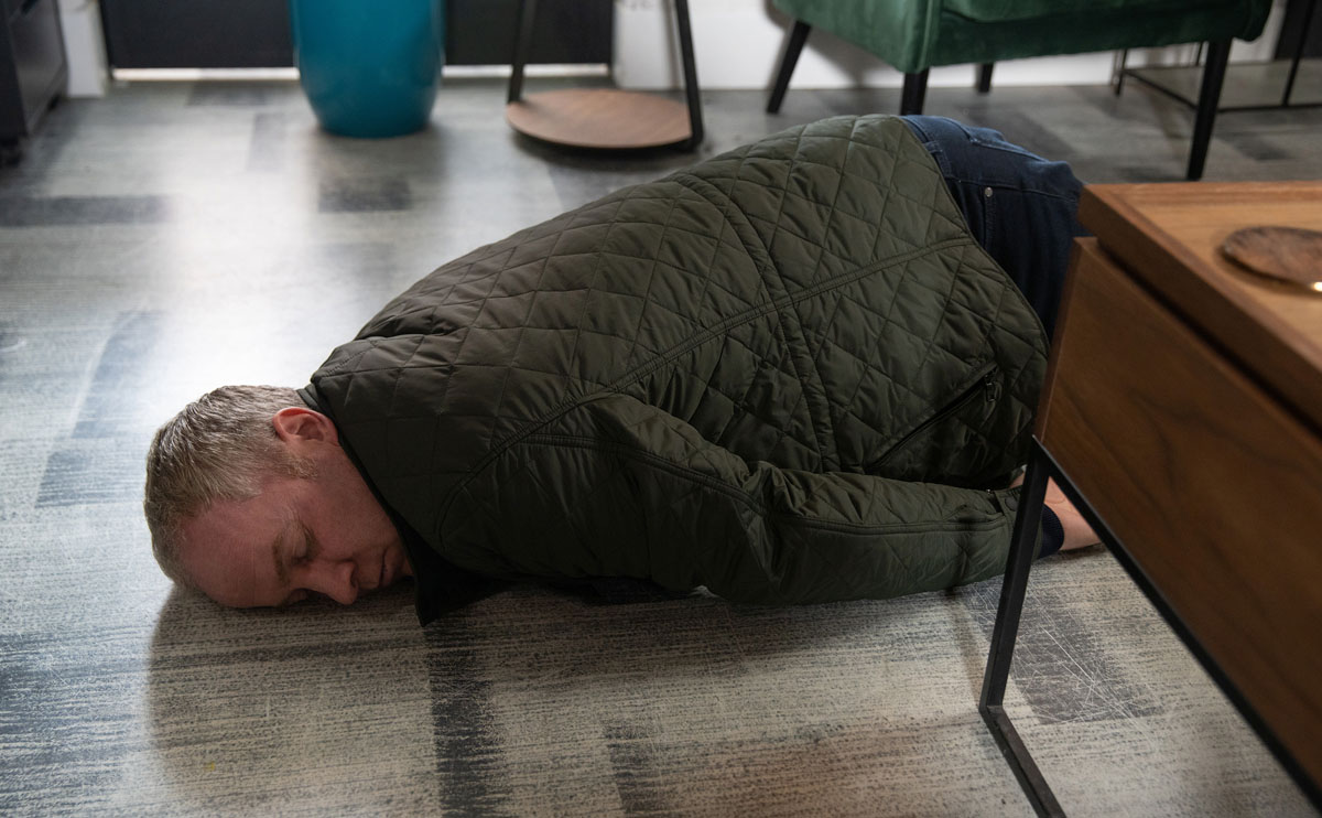 Now suddenly having a use for it, Stephen hauls Teddy’s body into the roof box, but then finds it too heavy to lift back onto the car. That is until Kevin (Michael Le Vell), Abi (Sally Carman-Duttine) and Tim come along. On seeing Stephen struggling, they offer to give him a hand, blissfully unaware of just what is inside!