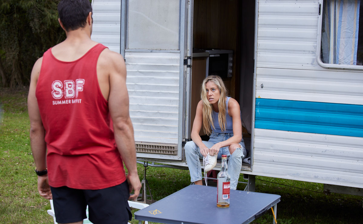 After causing a drunken scene at Salt, Flick popped into the Lyrik home to swipe a bottle of Remi’s rum, and continued the party solo back at the caravan park.
