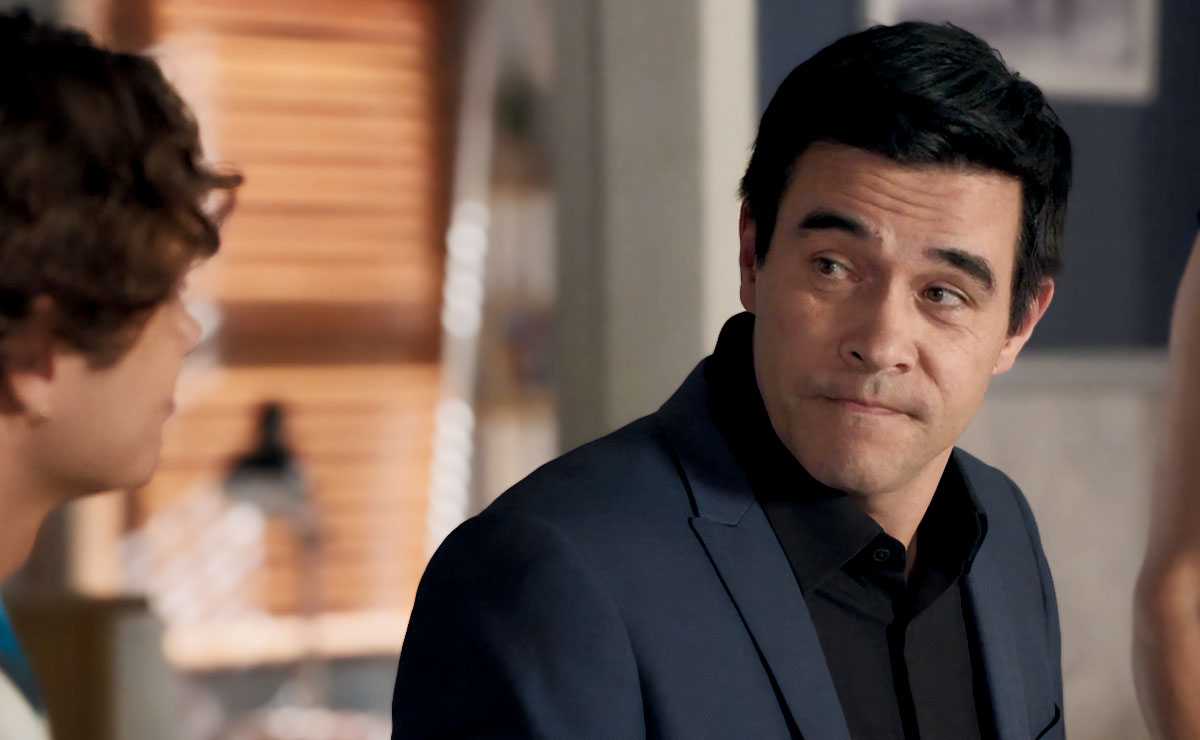 After receiving a text from Leah (Ada Nicodemou), Theo (Matt Evans) rushes home only for Justin to state that he doesn’t want him to accompany them to the courthouse. The last thing he wants is for Theo to see him dragged away in a police van.