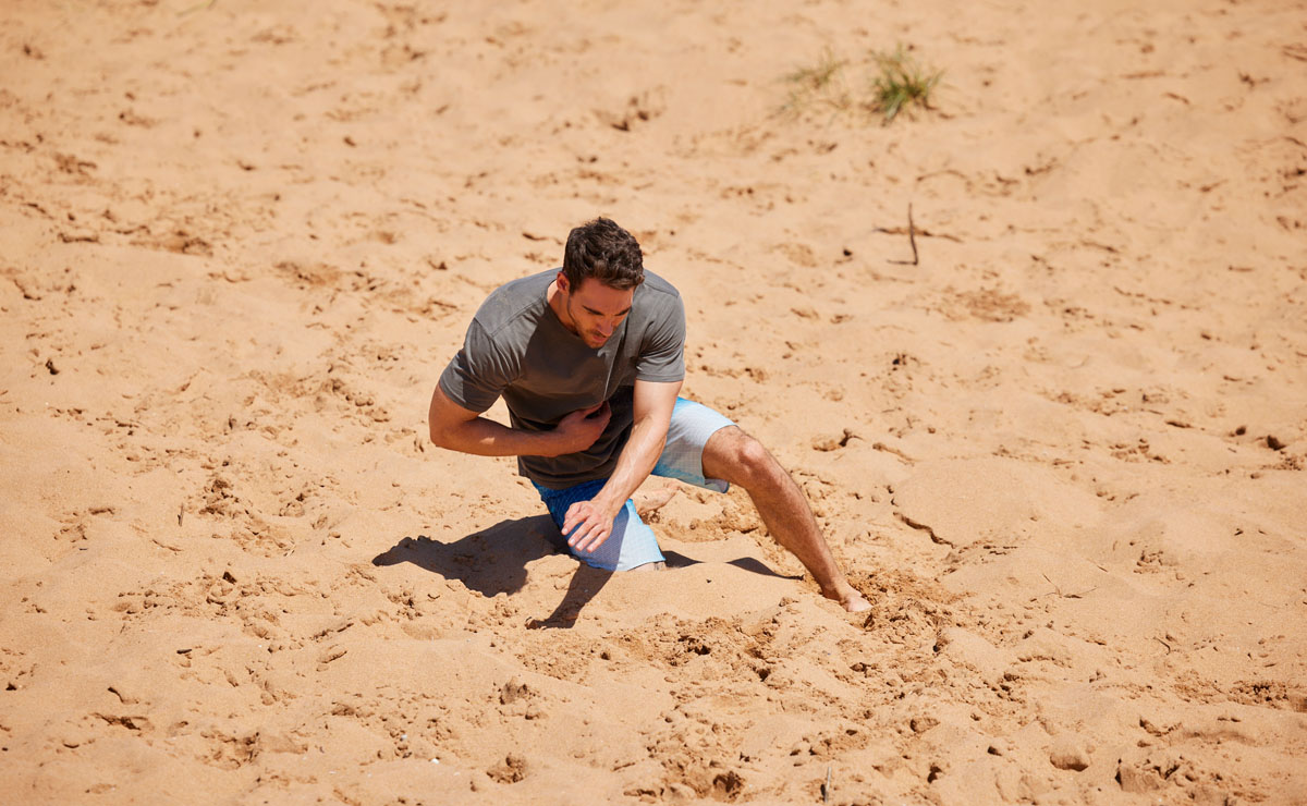 The next morning, Mali has just finished talking with Mac when he sees Xander clumsily walking down the beach towards him. Clutching his wound site, Xander falls onto the sand as he groans in pain.