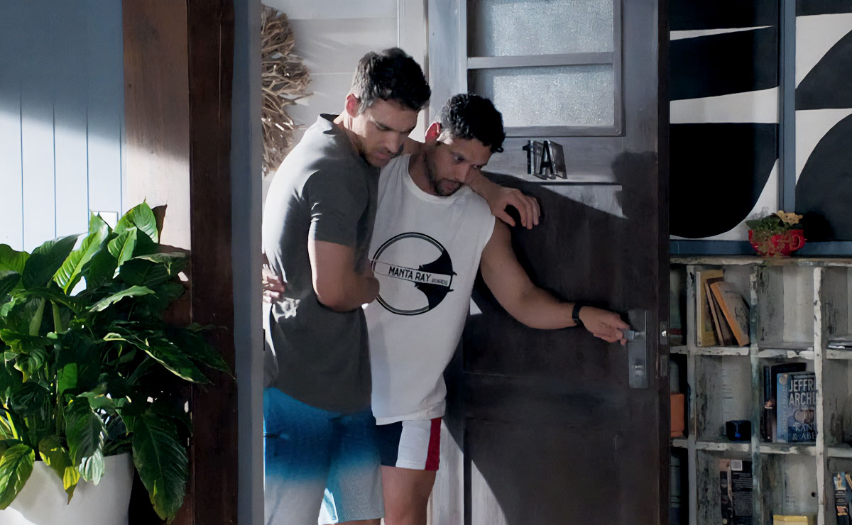 After spotting Xander collapse in pain on the beach—taking a surf whilst recovering from major surgery having taken it’s toll on him—Mali insists on helping Xander back to the pier apartment.