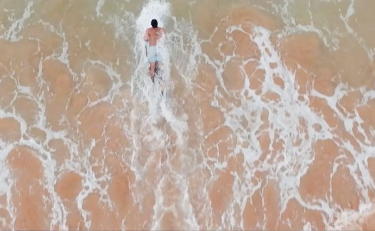 Soon after, he runs into trouble, as the promo shows him getting wiped out by a wave.