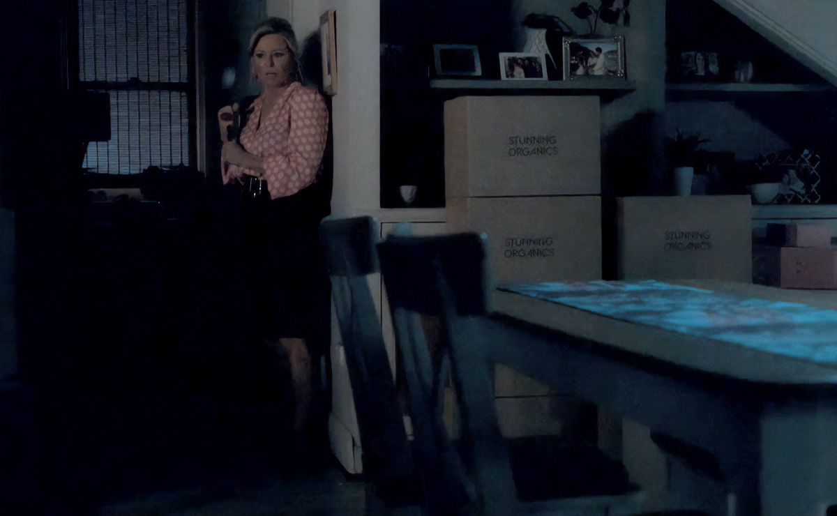 John unfolds the note that’s wrapped around the brick, and it’s clear to them both that Stunning Organics are watching Marilyn’s every move—”No more interviews. Or else.”