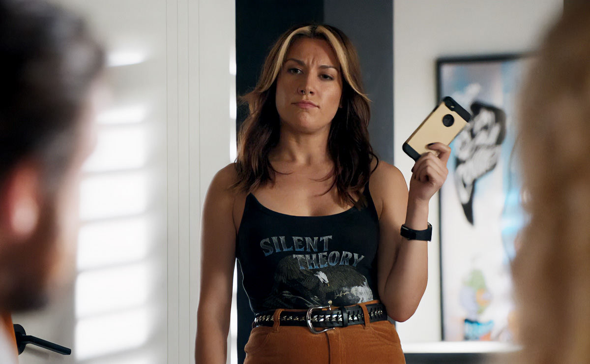 Kirby is the last thing on Theo’s mind as Justin (James Stewart) brings him up to speed on the situation, feeling guilty for his part in it, and he chooses to ignore text and phone calls from her throughout the morning.