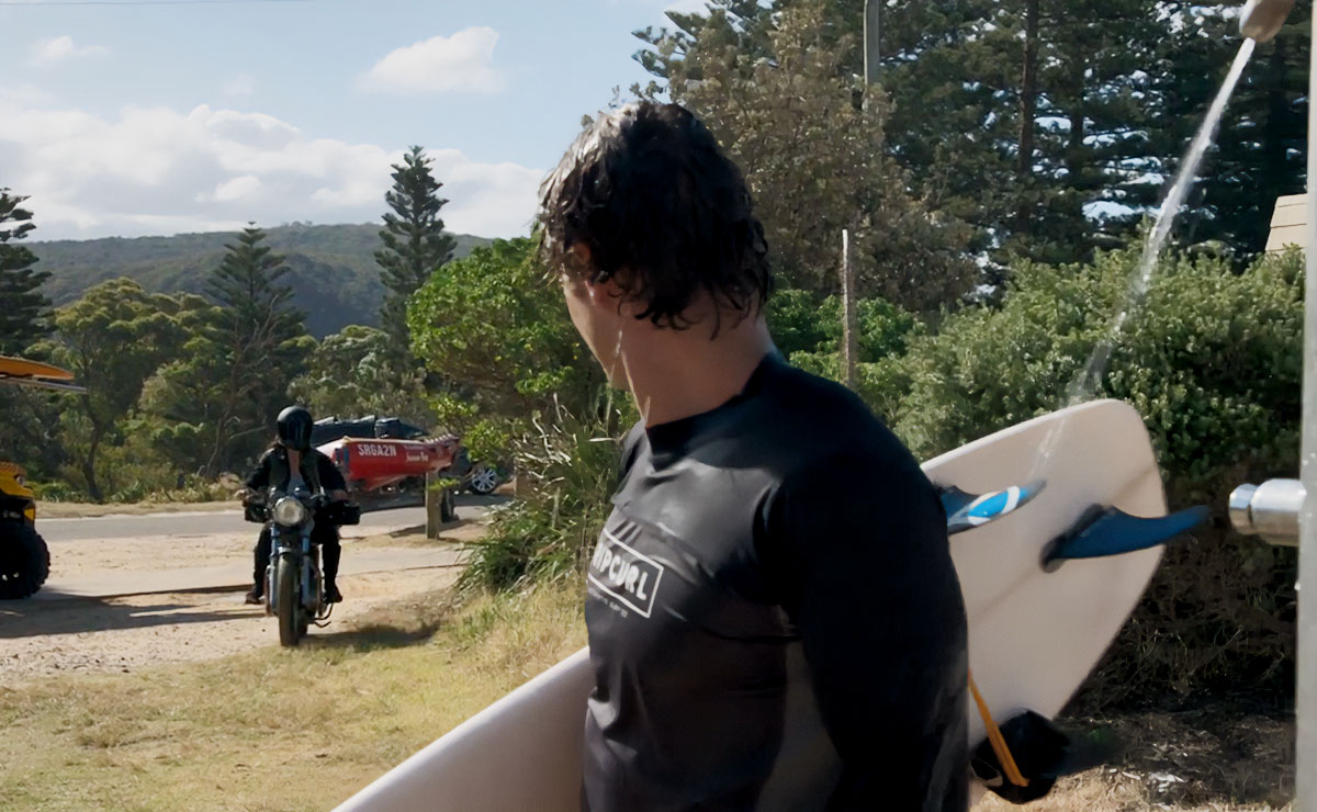 The next morning, Theo meets a stranger as she roars up to the surf club on her motorbike—she’s looking for Remi.