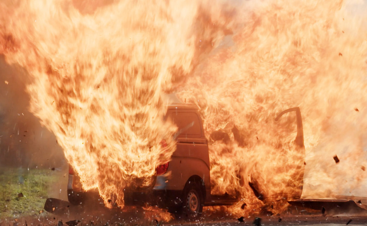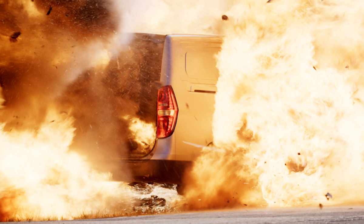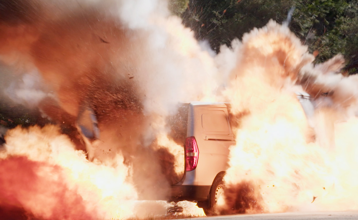Mali rushes towards the van, but it suddenly explodes in a huge fireball, throwing him into the air.