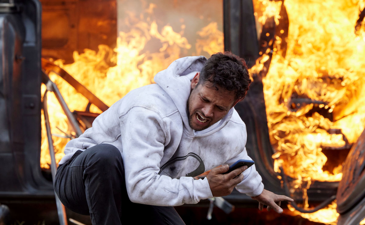 Eventually coming to with a loud ringing in his ears, Mali quickly goes to check on John and Roo. Thankfully both managed to escape the van just in time, but were caught up in the blast.