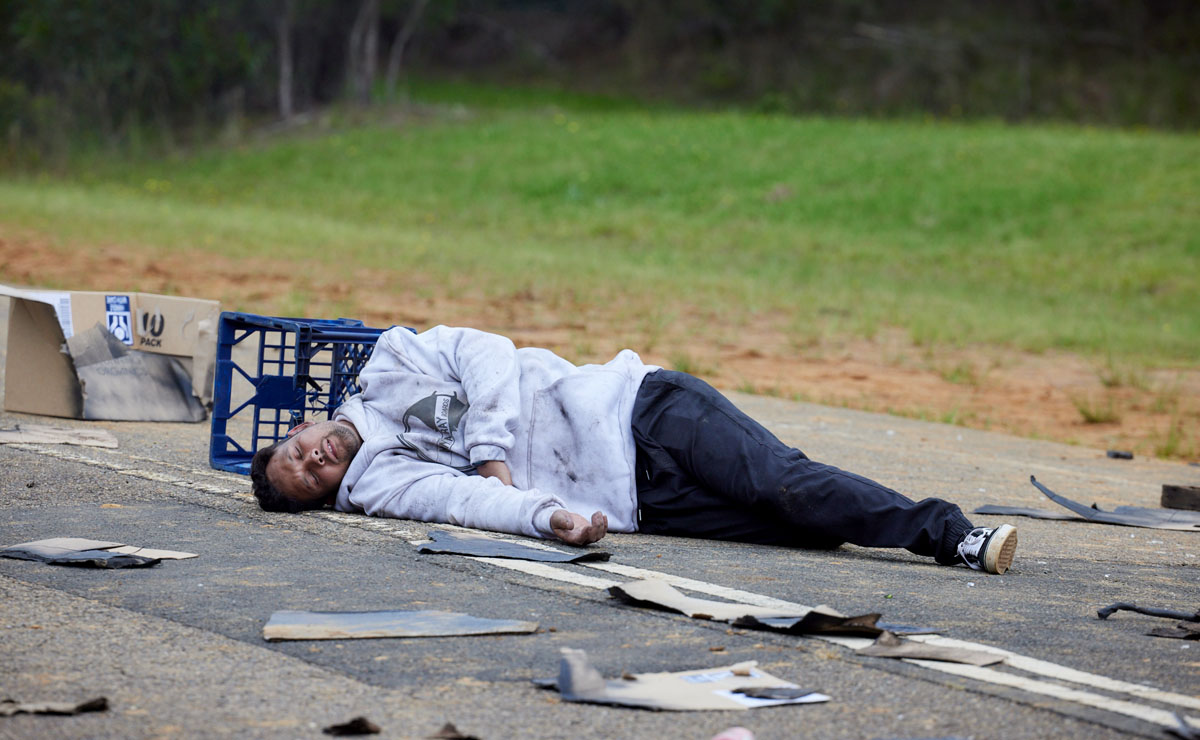 As we return to the immediate aftermath next week, Mali is out cold on the road as the inferno rages.