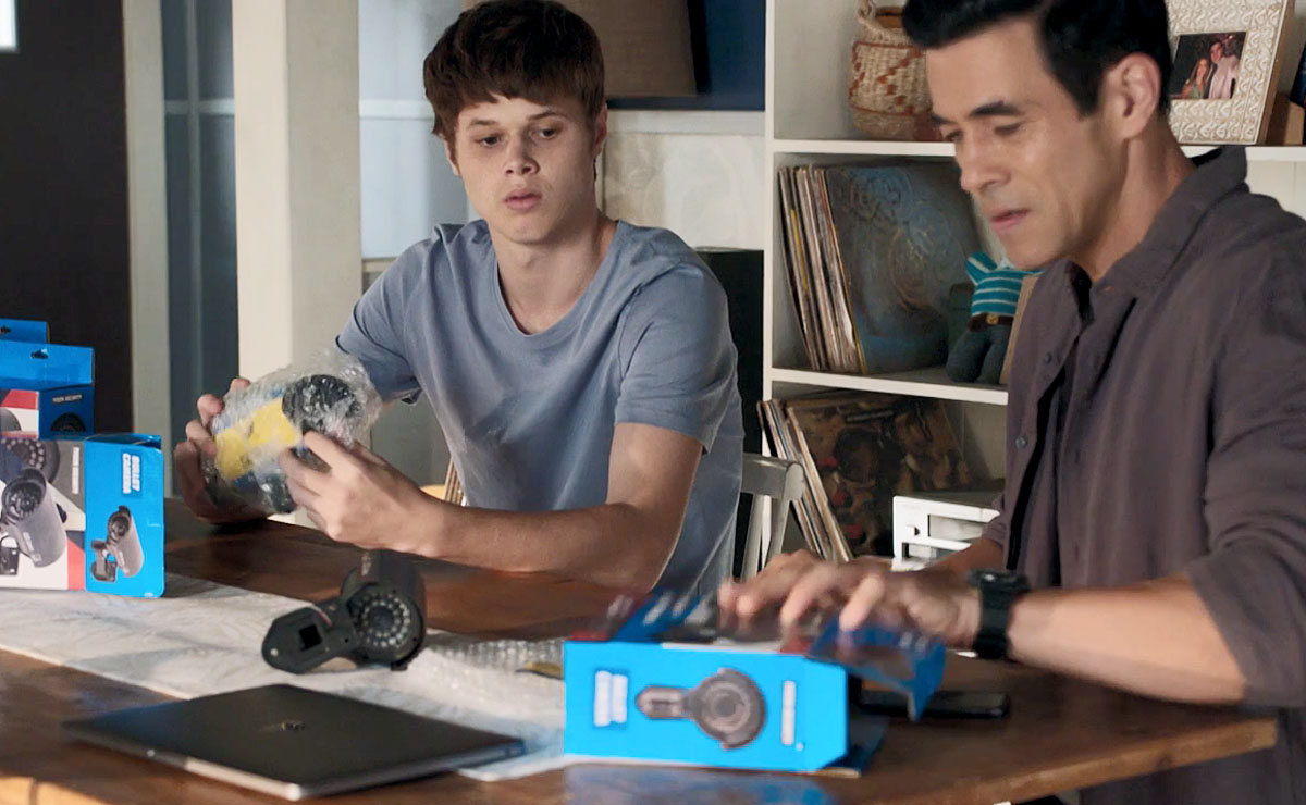 Once the system is live though, Justin, Leah and Theo (Matt Evans) are concerned by how obsessesive Andrew becomes in watching the live feeds on the laptop. As the days pass, Andrew even rejects Theo’s suggestion of going to the beach, believing that Vita Nova will strike the second they let their guard down.