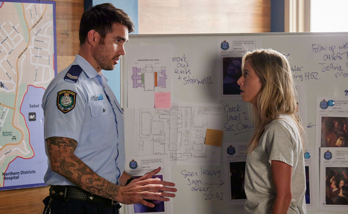 Flick is immediately faced with the scale of Cash’s investigation, with plans of the venue and potential suspects laid out on the whiteboard in front of her.