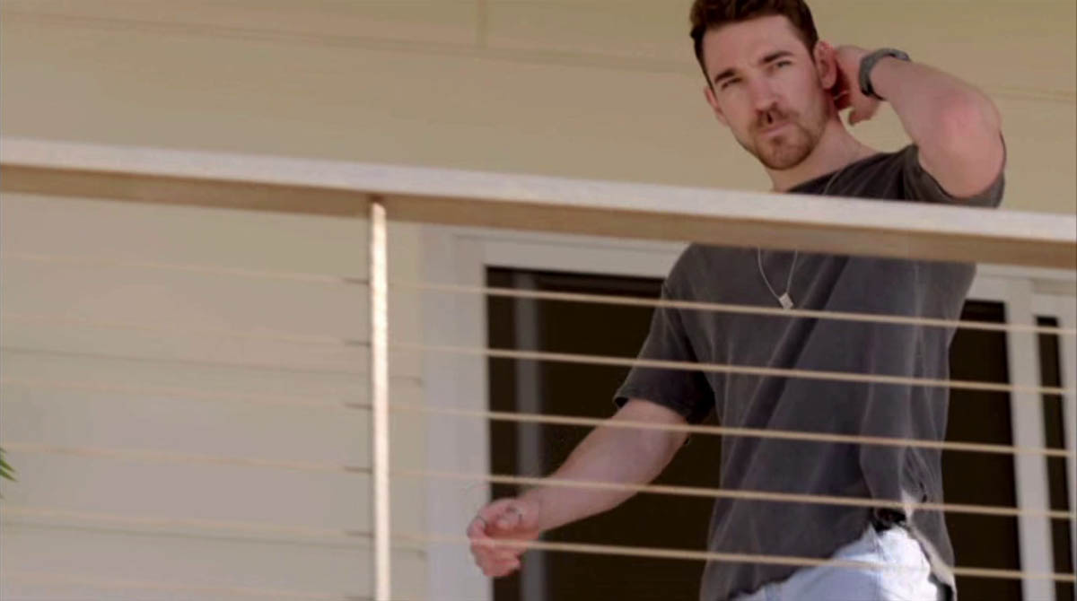 We then see clips of another scene, where Mali and his apparent wife-to-be laugh and joke together next to the beach, as Xander watches with interest from the balcony.