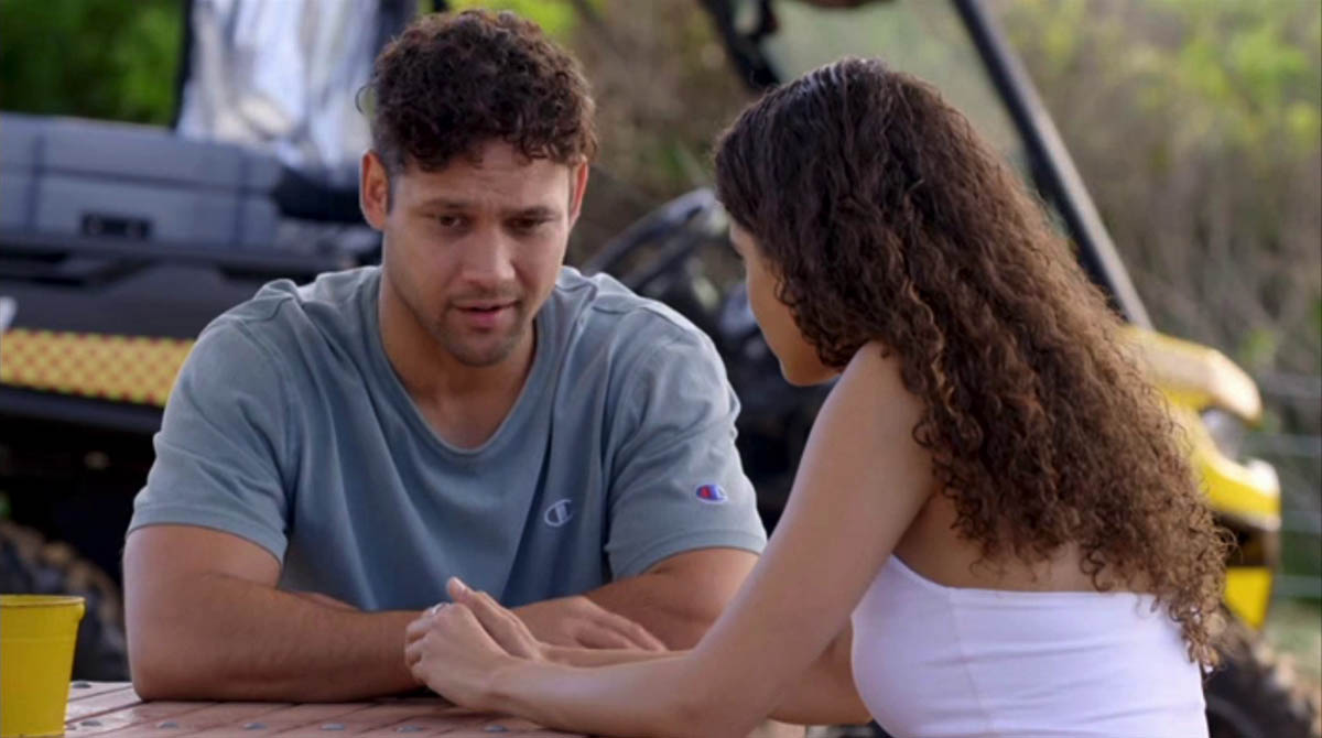“This is Zara,” Mali tells Xander (Luke Van Os) … but from the look on Xander’s face, Rose’s brother clearly wants more of an explanation than that.