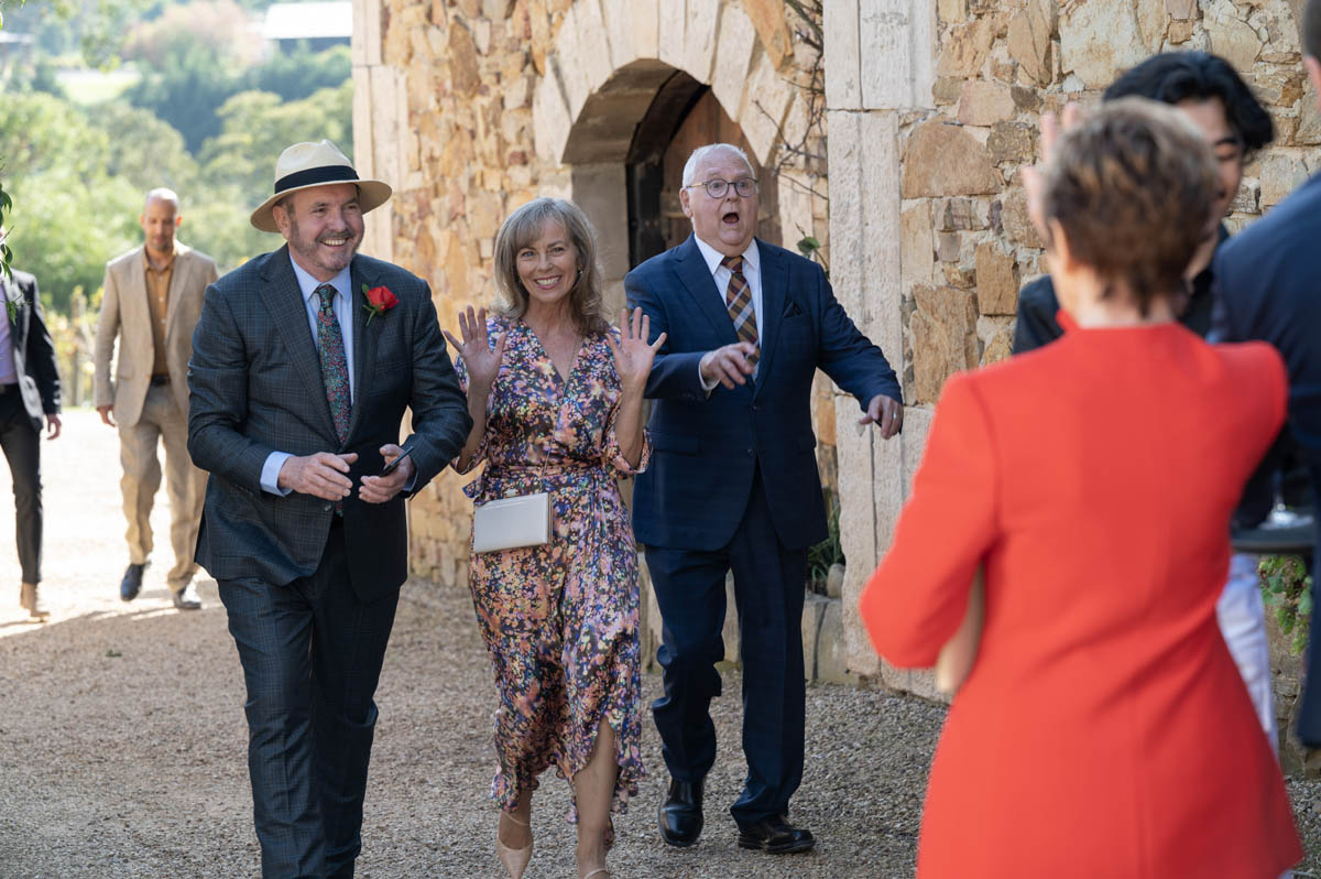 The photos show Toadie (Ryan Moloney) and Terese (Rebekah Elmaloglou) accompanied by most of their children – Nell (Ayisha Salem-Towner, Hugo (Tanner Ellis-Anderson) and Callum (Morgan Baker) were all there to support dad Toadie, while Imogen (Ariel Kaplin) returned to Erinsborough to support her mum Terese.