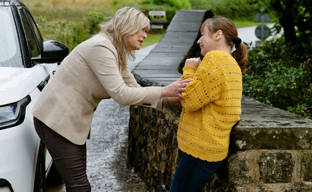 Kim is alarmed when she later sees Lydia sobbing her heart out on the humpback bridge just outside the village. Lydia has already alluded to Kim that something has gone down between her and Craig, but wasn’t able to open up to her completely. Now at the end of her tether with Craig’s lies, Lydia finally admits to her friend what happened that day in the office.