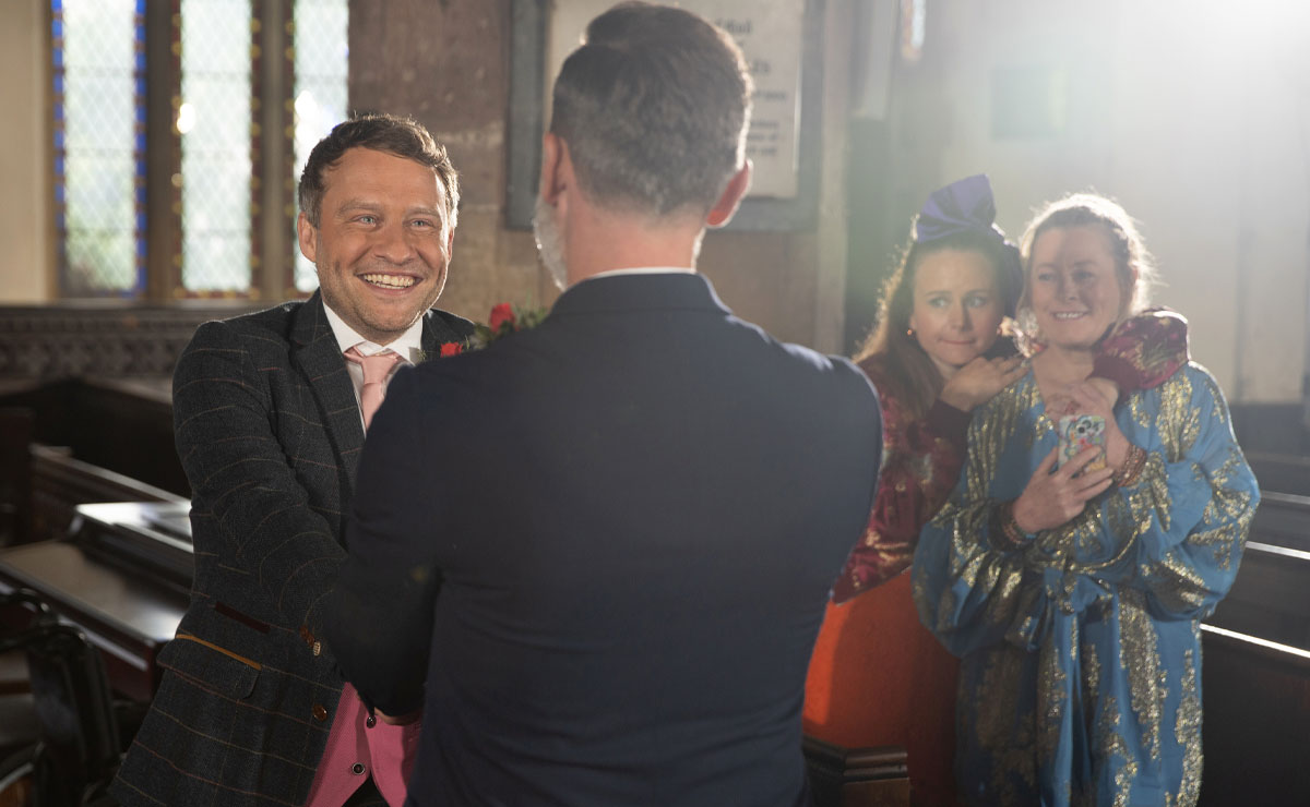 Alone with Billy after pretending he needed some air, Paul explained that he had arranged for one of Billy’s vicar friends from down south, Degsy (Christian Ballantyne), to meet them at St Mary’s where he would preside over a religious ceremony. It wouldn’t be ‘official’ of course, but it would be the setting that Billy had always wished for.