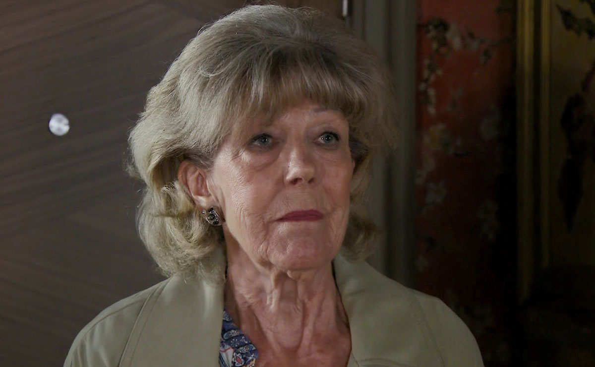 “Although she is angry with Stephen herself she has no idea why Peter is attacking him,” Sue Nicholls reveals. “If she hadn’t got there I am sure Peter would have killed him.