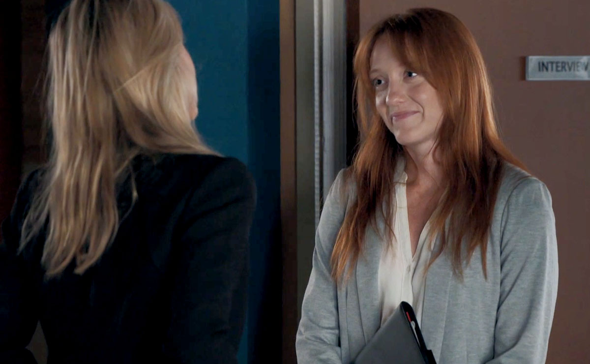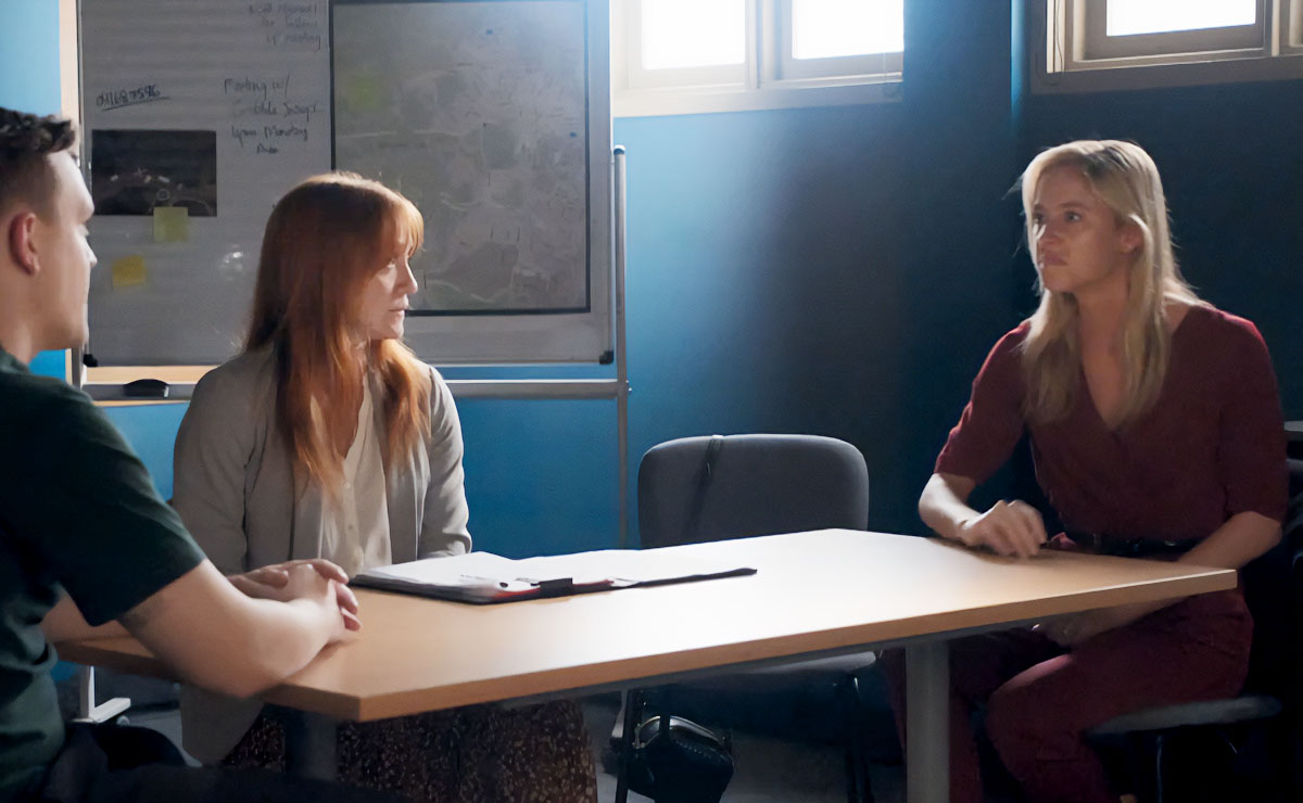 At the police station, Flick meets with Amanda (Alex Malone), who we last saw guiding Justin through anger management counselling following his assault charge.