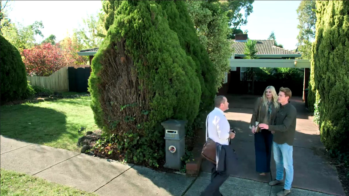 After lunch with Sam and Jane, Byron takes Reece to Ramsay Street and shows her No. 32. He’s grateful that she found common ground with his mother, and it only serves to strengthen their relationship.