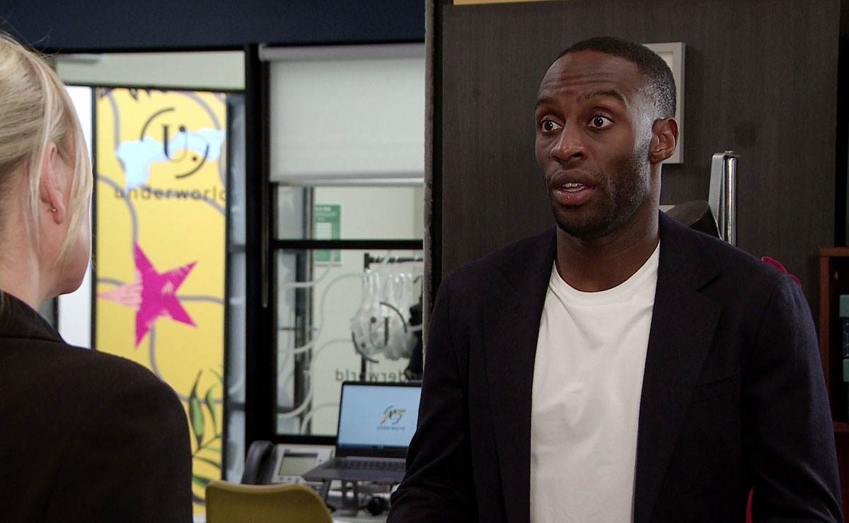 With Carla heading off to Spain last minute to try and save a failing deal, Sarah (Tina O’Brien) was left with the unenviable task of firing Michael, her former business partner, on Carla’s behalf.