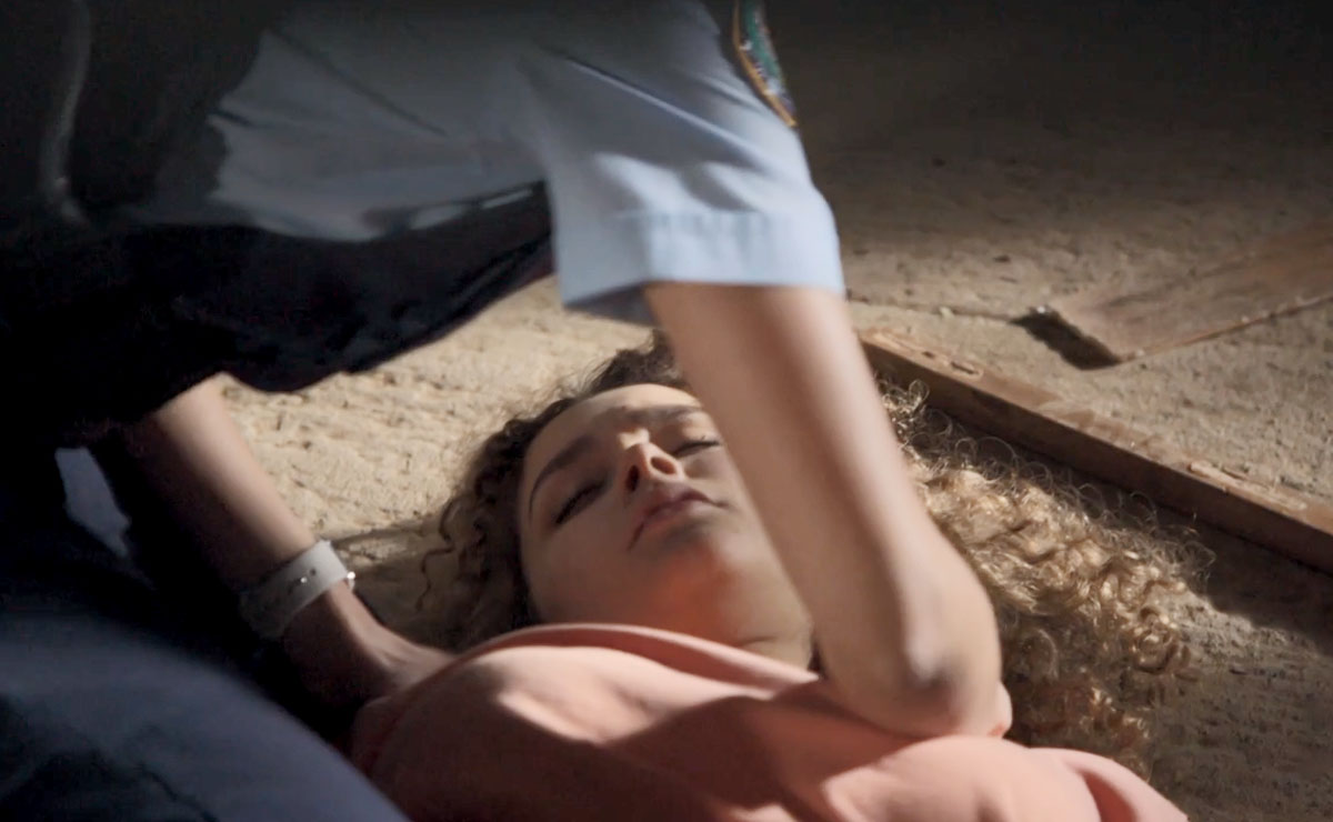 When paramedic Jo (Katie Horky) arrives on the scene, she administers medication to reverse the overdose, but it doesn’t appear to be working…