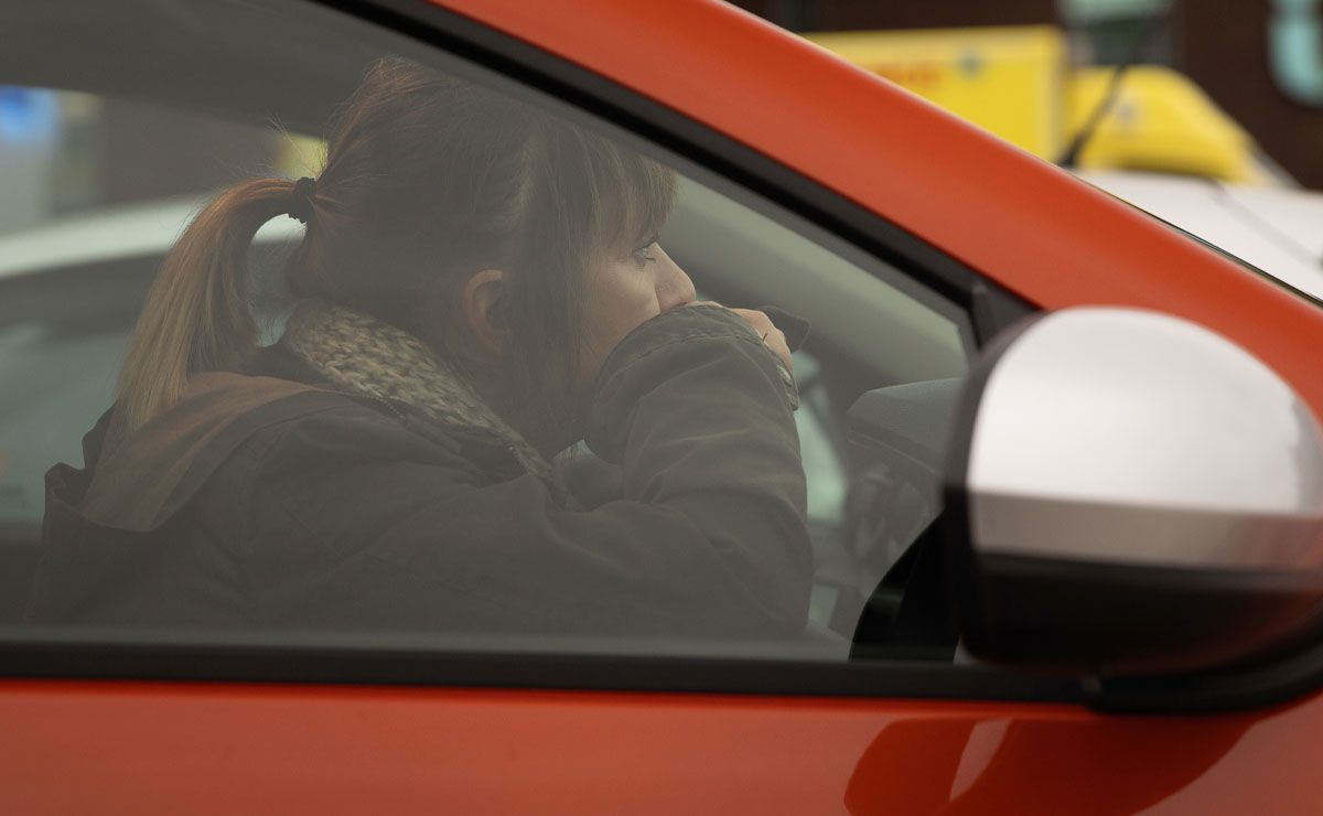 Outside Hotten Hospital, Rhona sits in her car and watches as Gus exits, waiting for her moment.