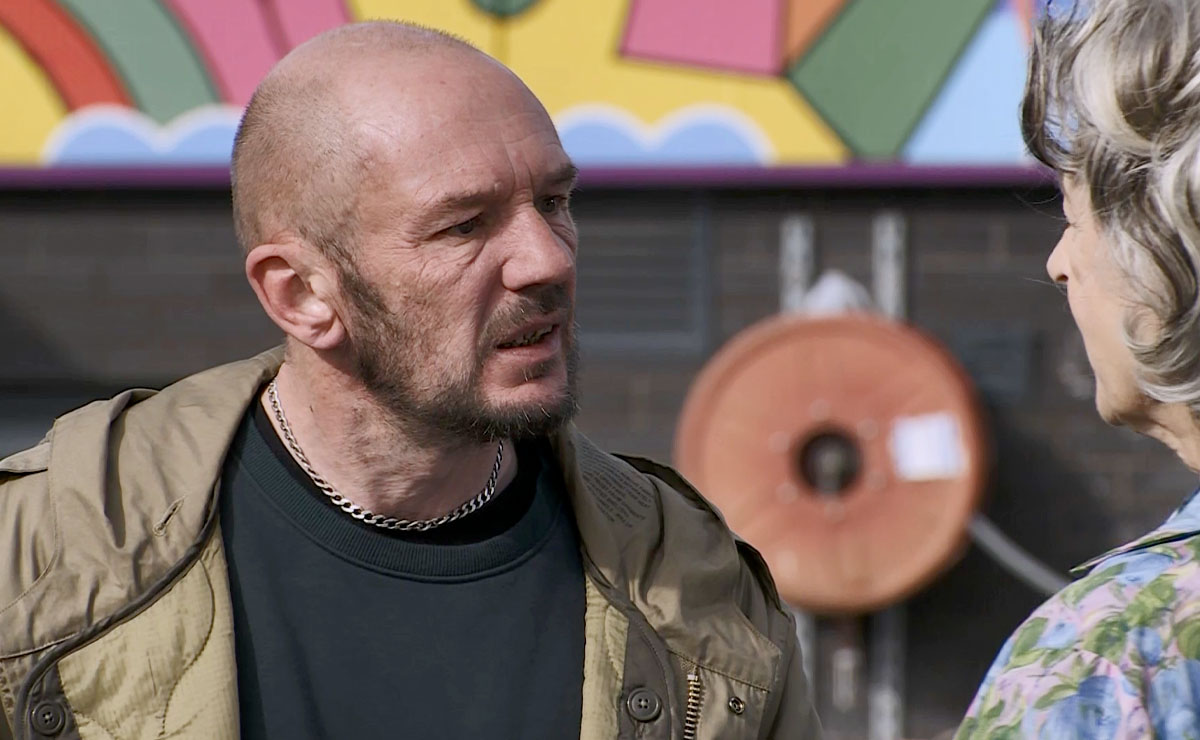Terry had got on Evelyn’s bad side this week after she saw him mistreating his dog. When she later caught sight of the dog being shut into Terry’s van outside the charity shop, Evelyn donned a cunning disguise and rescued the dog, taking it home to No.9.